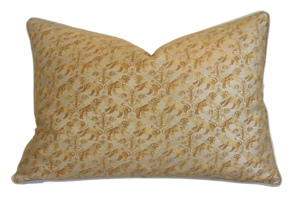 Venetian Italian Designer Mariano Fortuny Richelieu Lions Feather/down Pillow 25" X 17"