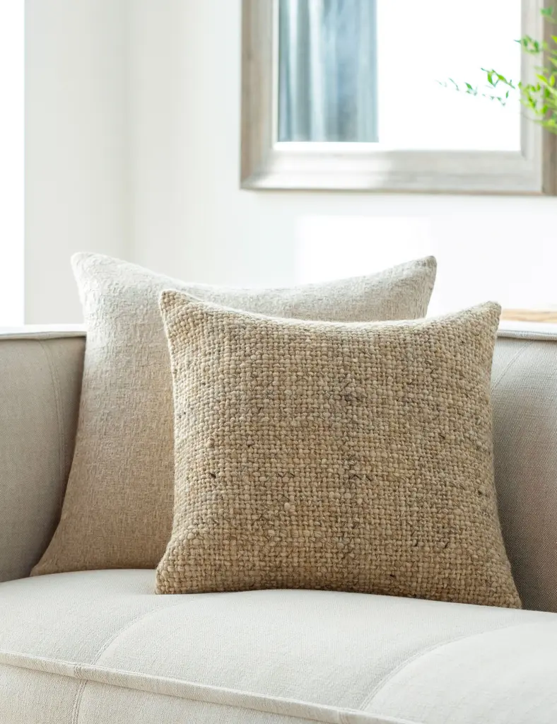 Elevate your living space with our Vidal throw pillow featuring a heathered design in a chunky wool weave. This versatile accent pillow combines a modern look with tactile appeal, making it the perfect piece to layer into an inviting curation.