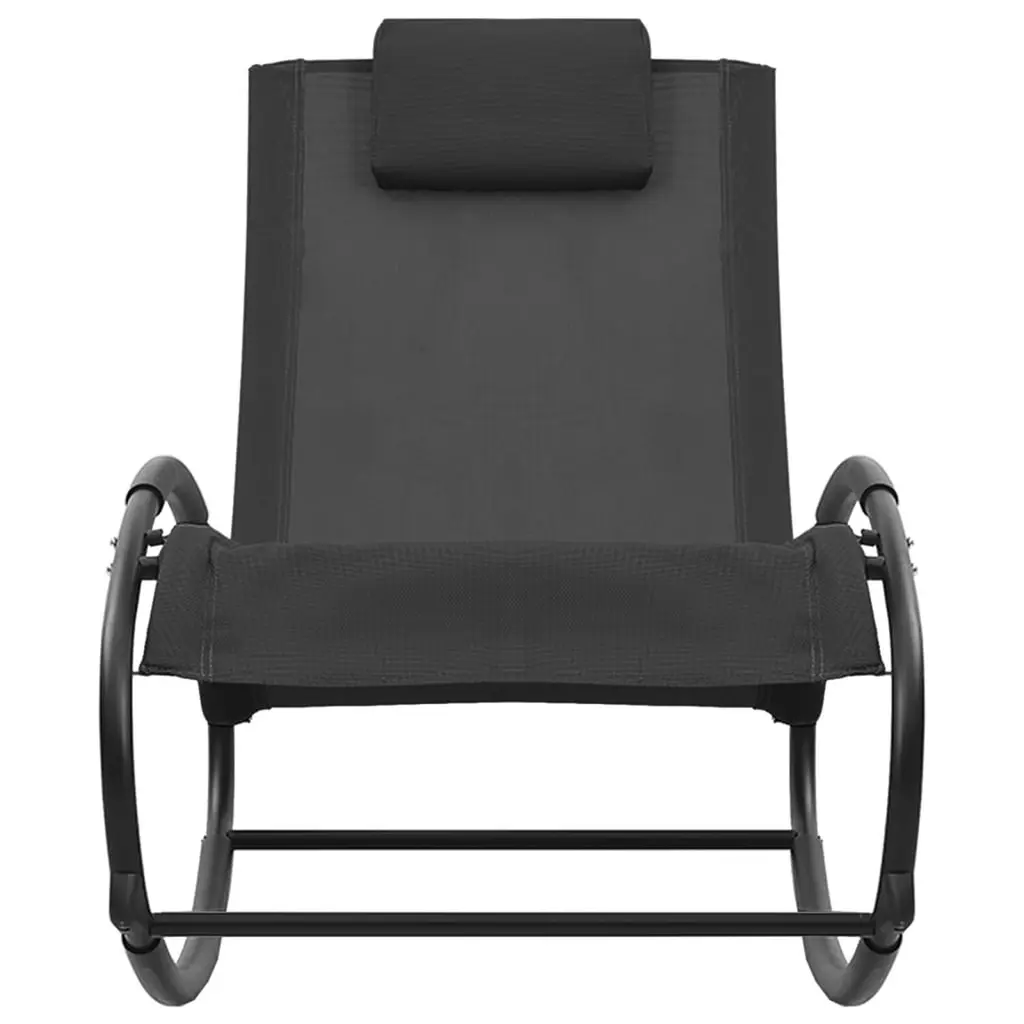 This trendy sun lounger is an ideal choice for spending a relaxing afternoon in the garden, patio or by the pool.The steel frame makes the garden lounger sturdy and stable. Thanks to the water-proof and breathable Textilene fabric, the lounger is hard-wearing, easy to maintain and suitable for daily outdoor use. The rocking chair, featuring an ergonomic design, provides optimal seating comfort with a curved backrest and armrests. Additionally, the removable headrest offers excellent support for your head and neck.Note: In order to extend the life of your outdoor furniture, we recommend you to protect it with a waterproof cover.
