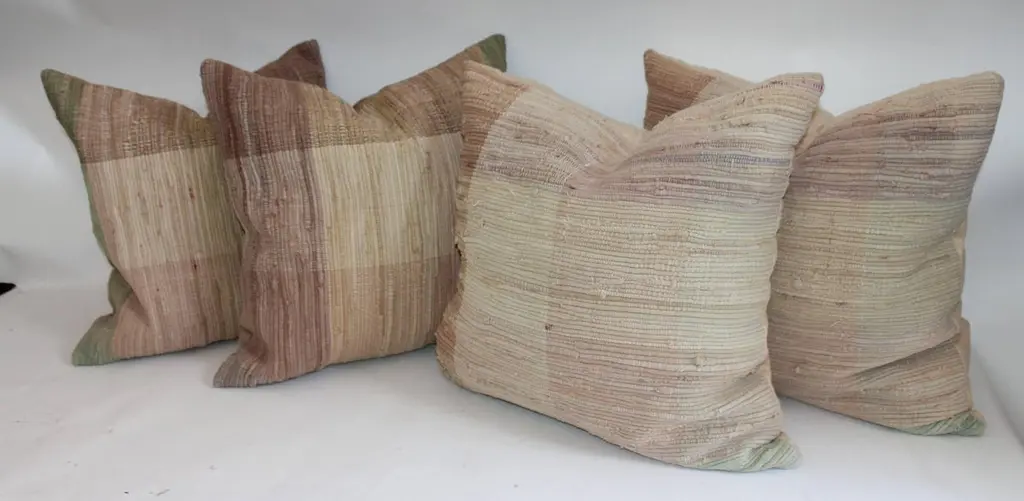 One pair is measure: 20 x 20 the condition are very good with tan cotton linen backing. There are two pairs.One pair is measure: 22 x 22.