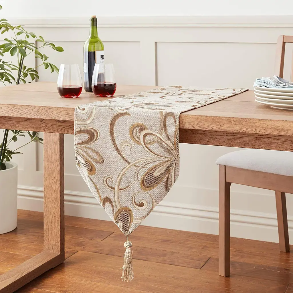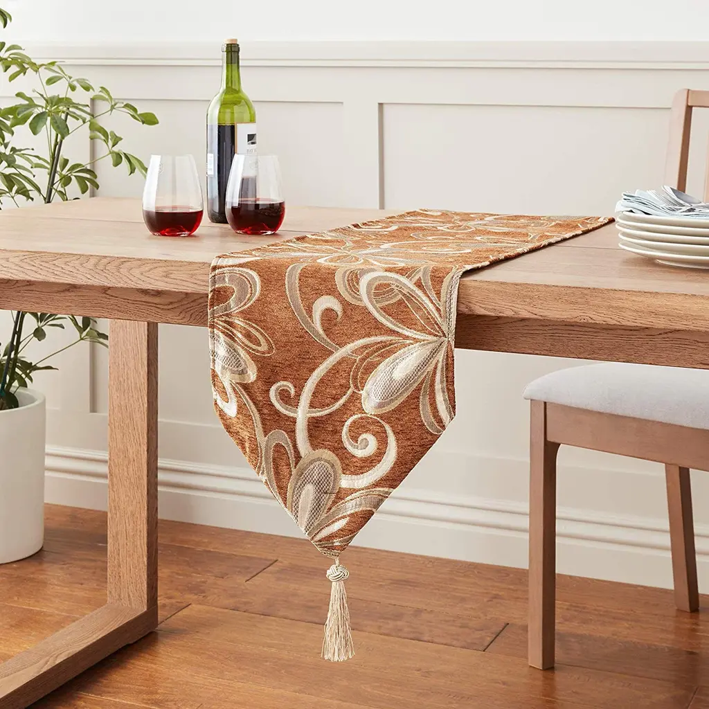 Violet Linen Inc. was founded in 1996 and established in the beginning of 1997. Violet Linen's mission is to preserve the look and touch of many generations back "Grandma's magnificent tablecloth," while focusing at the same time on easy care, durability and at very aggressive pricing, and they are proud to have accomplished their goals and objectives well beyond their expectations and have ever since enjoyed a sterling reputation among their thousands of customers. Chenille Chateau Vintage Floral Pattern table runner in a variety of great colors Chenille Chateau Vintage Floral Pattern table runners are expertly tailored, Fabric is made from 100% Polyester Microfiber for ultra soft feel and easy care. The Table Runner from our Exclusive Chenille Chateau Vintage Floral Pattern Collection transforms any tabletop into a visual masterpiece. The modern and trendy table runner is a wonderful accessory to any table or buffet server, and is also perfect for a special event or party like wedding reception tables, bridal showers, birthday parties, anniversary and many other special events. Decorate your home with richness and style with this table runner, and augment the unique style of your room in an instant! Having this custom table runner will add a touch of delight to your home decor, and will bring new life to your home and change your mood. The table runner is sure to add flavor, texture and depth to your living space. •100% Polyester. •Soft luxuries decoration for an affordable price. •Elegant tailoring and expertly sewn hems. •Fade-resistant and Stain-resistant. •Machine wash on cold, Tumble dry on low. • Matching Your Room Decor! These table runner are not only matching your dining room perfectly, but also for any other room decor that purchased thru Chenille Chateau Vintage Floral Pattern collection, which providing a more cozy atmosphere to your room. Homey Look - Woven jacquard fabric. Enjoy the warm feel, crisp colors and updated look, that table runner will bring into your home. Stylish and Luxurious - Style up and add richness and beauty to any decor, to a dining table, kitchen table, bed-side table, sofa or coffee table. Long Lasting - Woven Jacquard fabric is one of the few textile patterns that never seems to fade from fashion and remains among the most distinctive patterns in design today. Matching Your Room Decor! These table runner are not only matching your dining room perfectly, but also for any other room decor that purchased thru Violet Linen Chenille Chateau Vintage Floral Pattern collection, which providing a more cozy atmosphere to your room, This design has matching accessories such as decorative throw pillows, cushion covers, window valances.That makes this beautiful table runner to coordinate perfectly with the matching accessories Easy Care - Machine washable in low temperature water, gentle cycle. Non Chlorine bleach. Tumble dry on low heat. Iron if needed on permanent press level.
