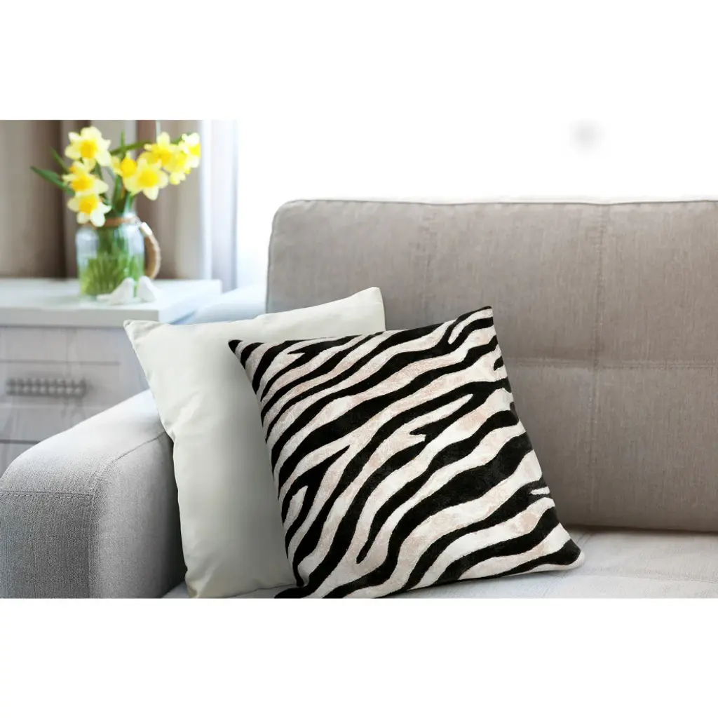 Visions I Zebra Pillow, Black, 20"x20"