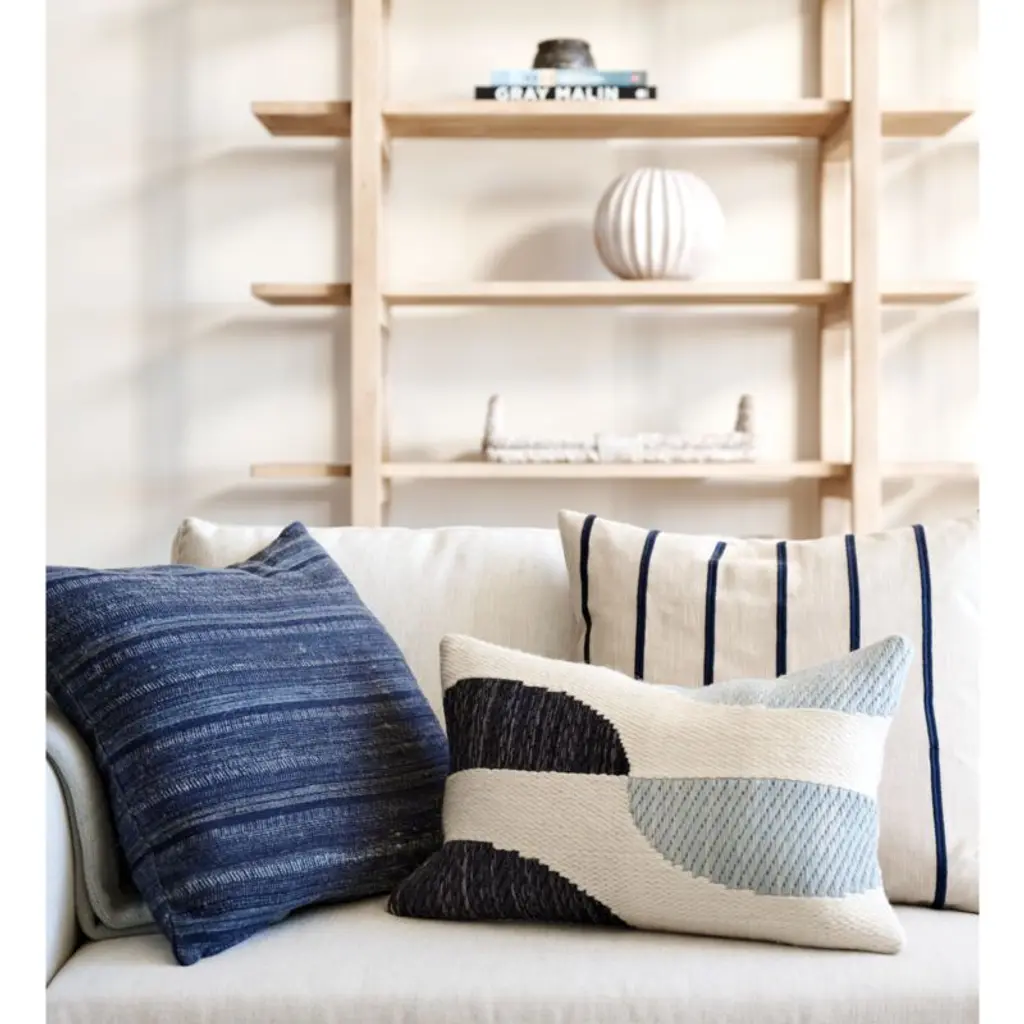 Silk combined with cotton give our Vittoria pillow wonderful texture, a soft hand and a casual-yet-luxe vibe. Horizontal stripes in varying weaves and tones of indigo blue create a subtle pattern that works well with blue-patterns as well as neutral solids. Our dark blue striped throw pillow includes your choice of a plush feather-down or lofty down-alternative insert.