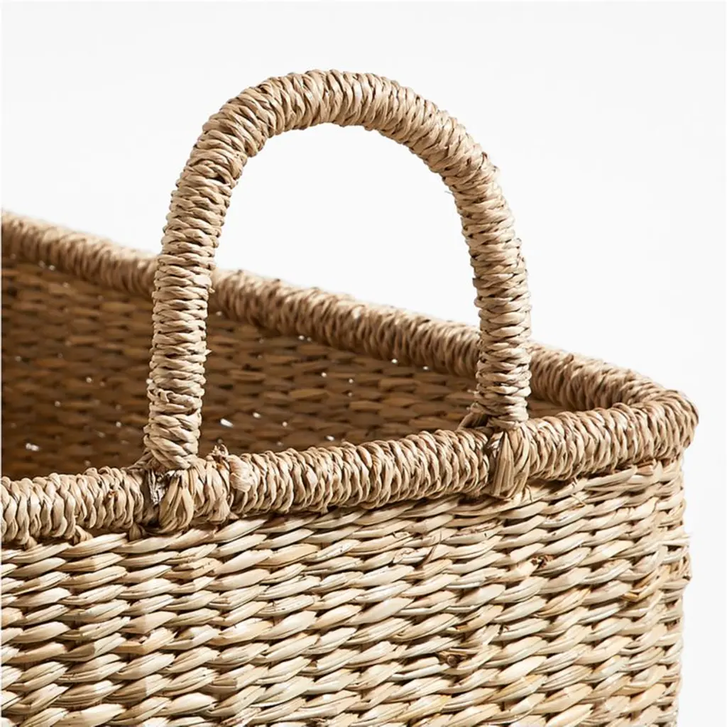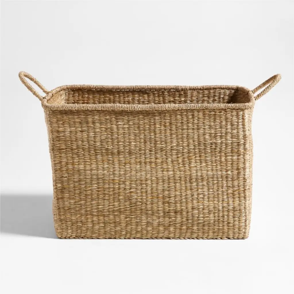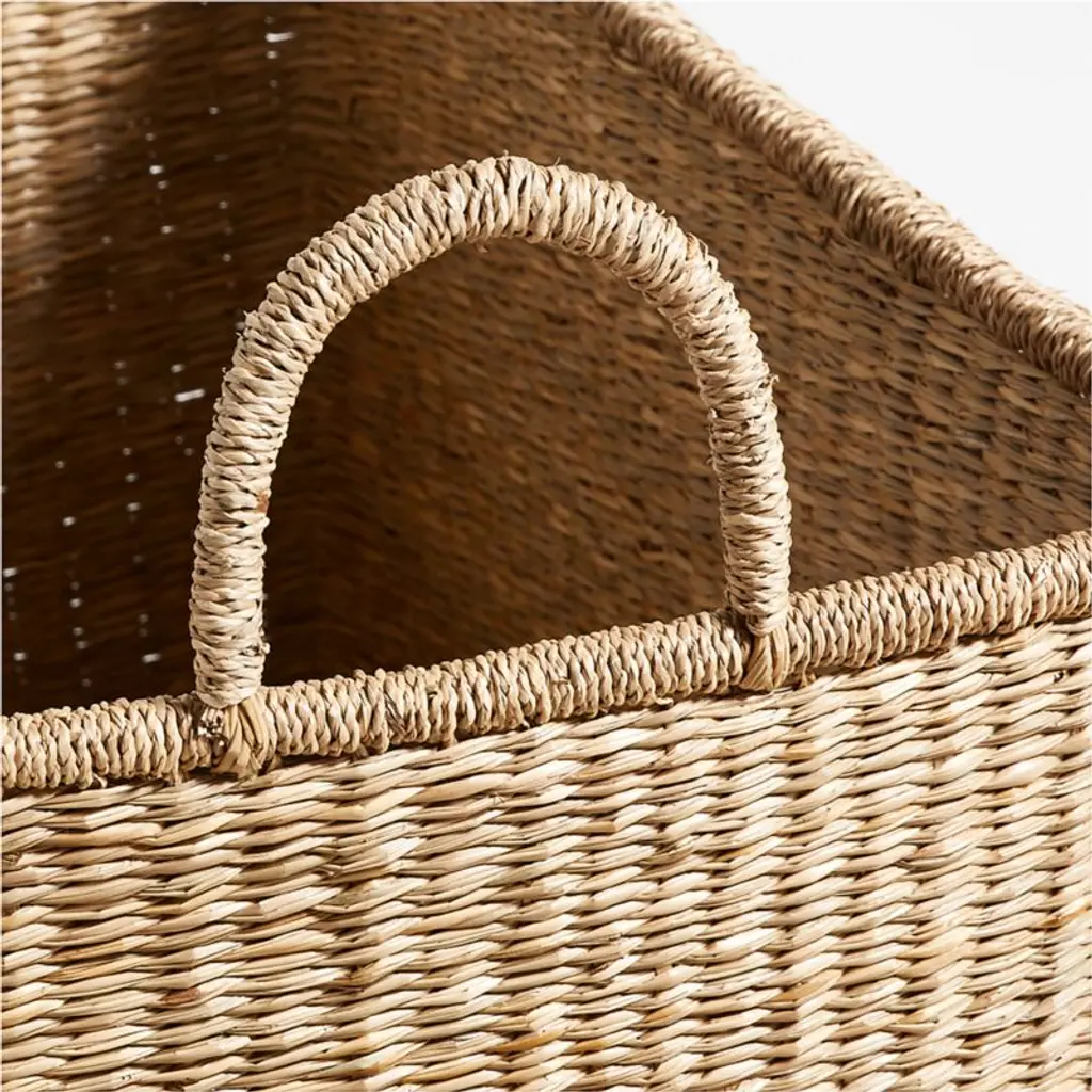 Natural seagrass weaves a basket with warm, organic appeal. Vonne offers aesthetic storage throughout the housewe love using it to corral throw pillows and blankets in the living room, guest slippers in the entryway or outdoor accessories in the mudroom. Woven tightly for durability, this extra-large decorative basket is finished with loop handles for easy toting between rooms.