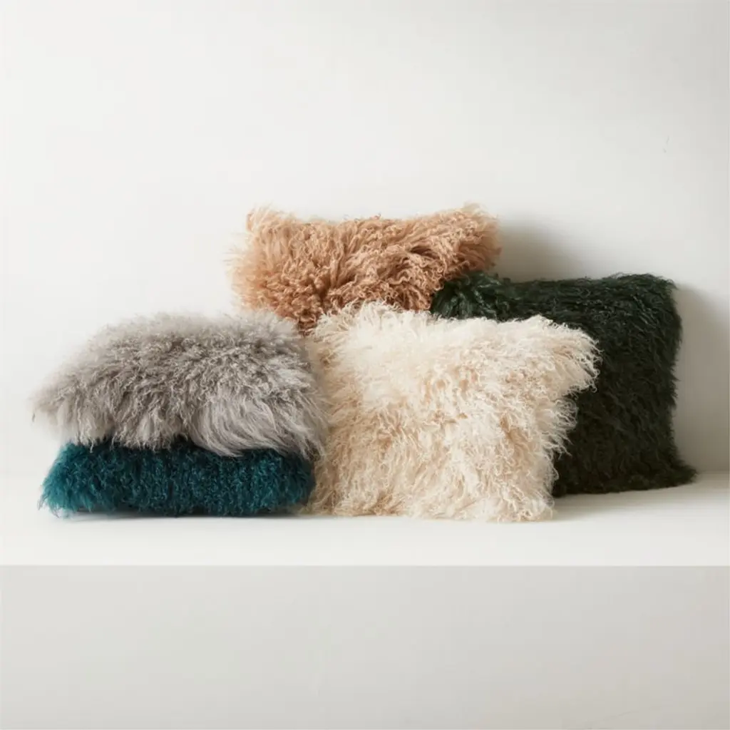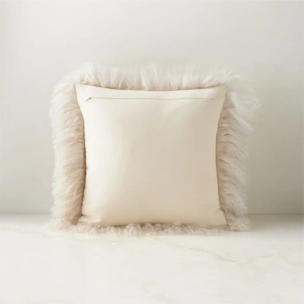 Warm White Mongolian Sheepskin Fur Throw Pillow With Feather-down Insert 16''