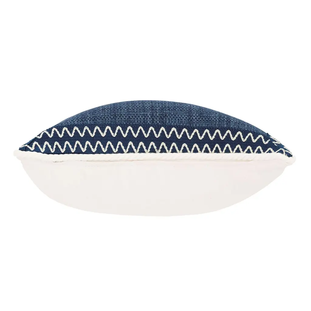 Wave Woven Zig Zag Trim Pillow, Blue/white