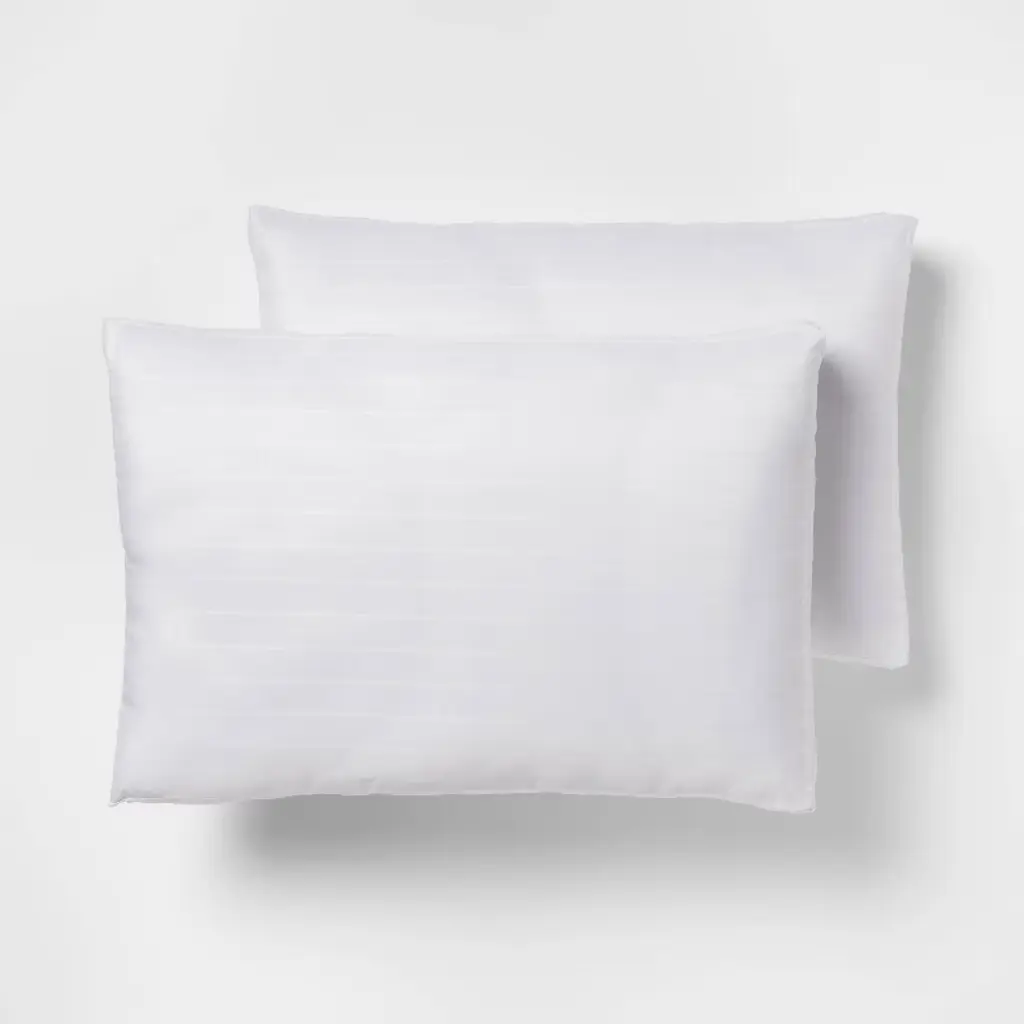This 2-piece bed pillow set brings plush comfort to your bedtime routine. Designed especially for stomach and back sleepers, these pillows are filled with 100% polyester fiber and encased in a soft, 100% microfiber cover with a 70-thread count. To maintain their freshness, simply spot clean with mild detergent and air dry. Versatile and cozy, you can even use these pillows in your living room for extra cushioning during relaxation time. We love that these pillows provide gentle support while you read, watch TV, or simply drift off to sleep.