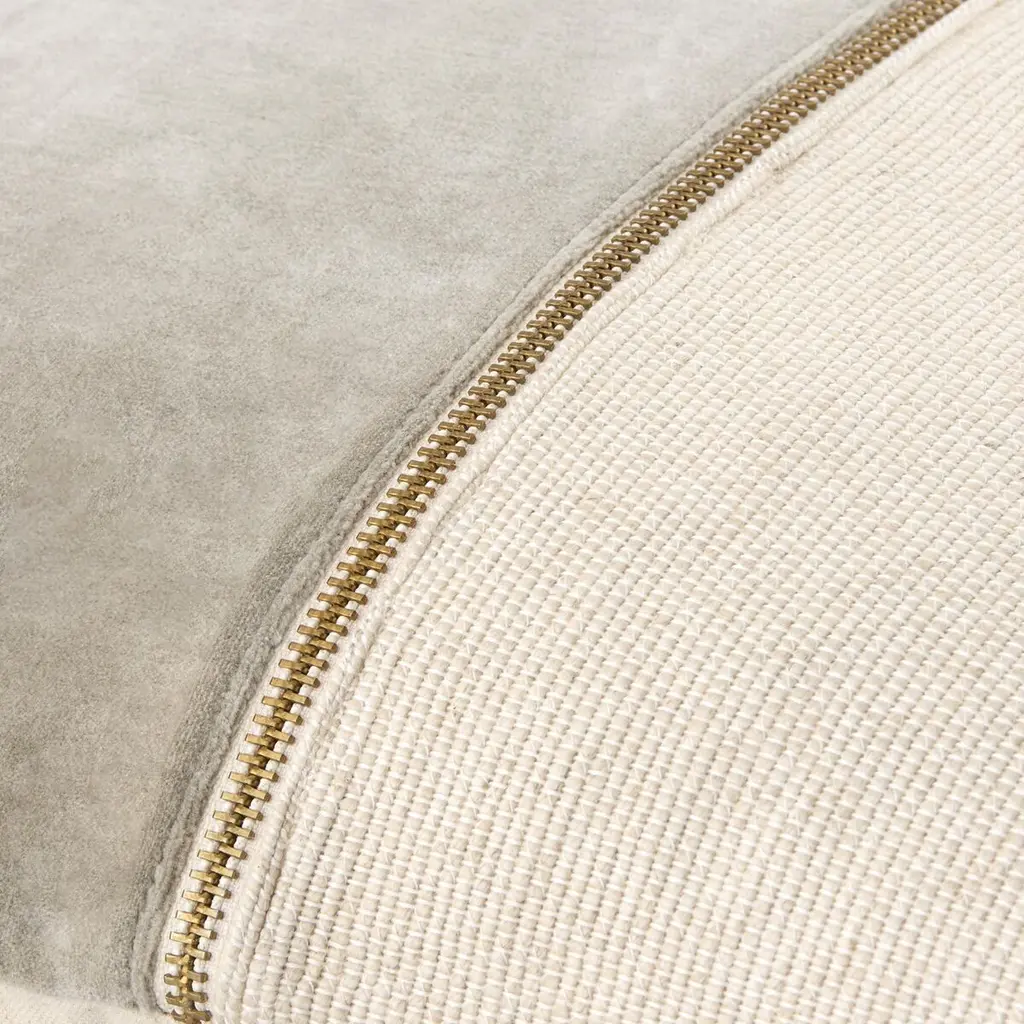 Designed by Galey Alix, the Waylon accent pillow combines classic elements in a fresh way. Crafted from linen, viscose, and cotton, its contrasting colors and textures meet in its middle with a classic brass zipper. Available in multiple color options.