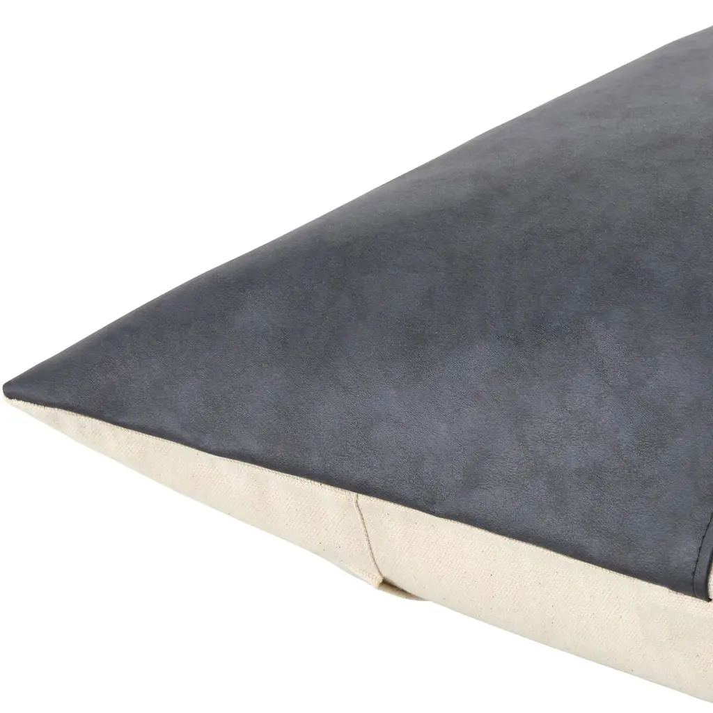 The Waylon accent pillow, designed by Galey Alix, combines classic elements in a fresh way. Crafted from linen, viscose, and vegan leather, its contrasting colors and textures meet in the middle with a classic brass zipper. Available in different color options.