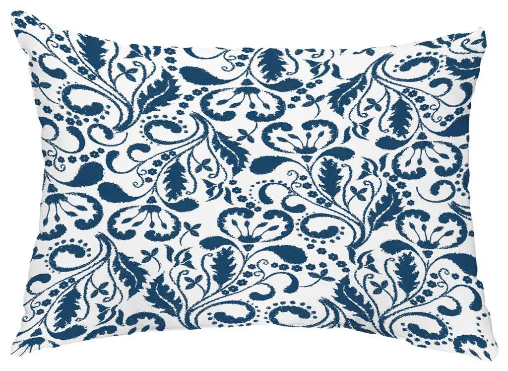 West Indies 14"x20" Floral Decorative Outdoor Pillow, Blue