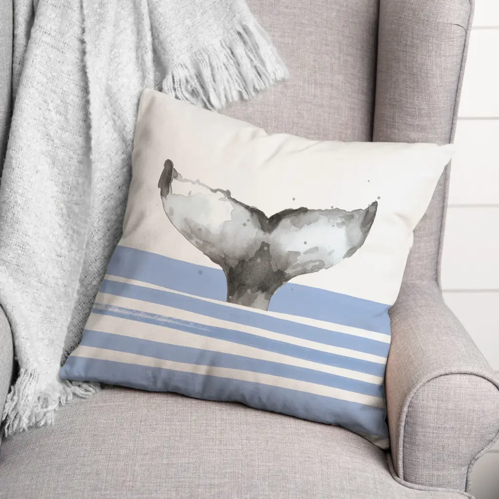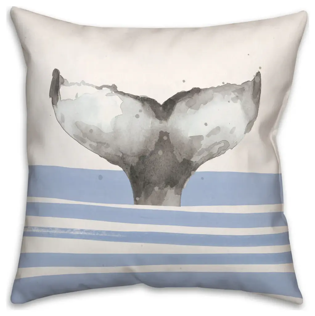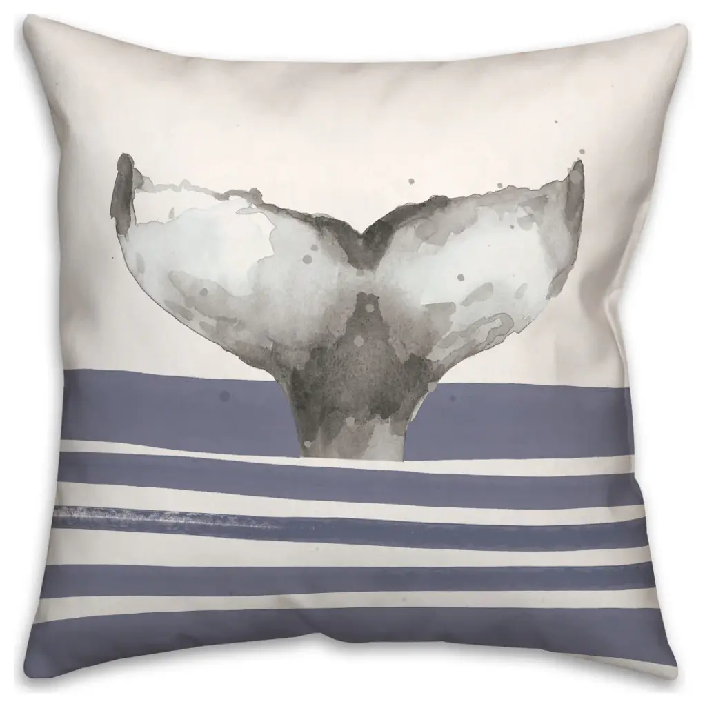 Whale Tail Stripes Blue 18x18 Pillow