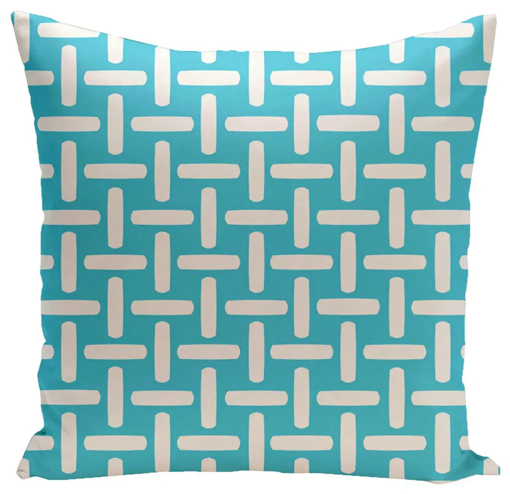 Whimsical Diamond Pattern, Blue Outdoor Throw Pillow, 20"x20"