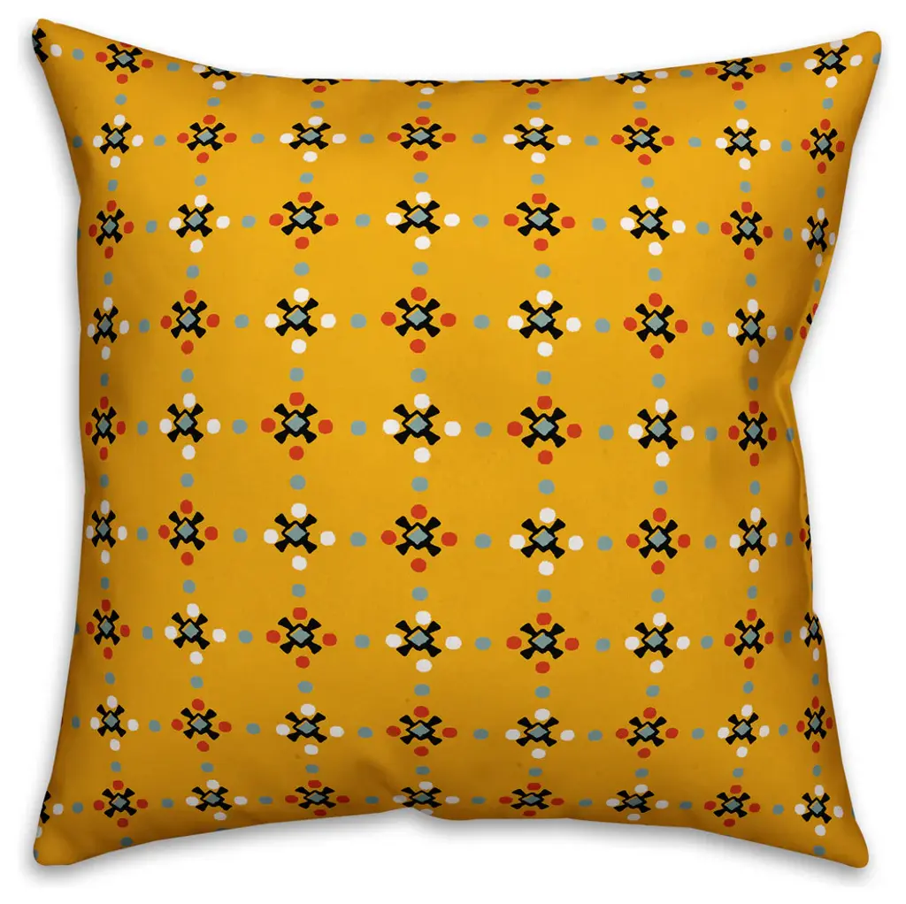 Whimsical Folk Pattern, Yellow Outdoor Throw Pillow, 16"x16"