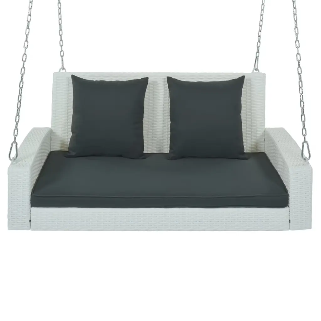 Whisen 2-person Wicker Hanging Porch Swing Rattan Swing Bench With Chains, Cushion And Pillow - White