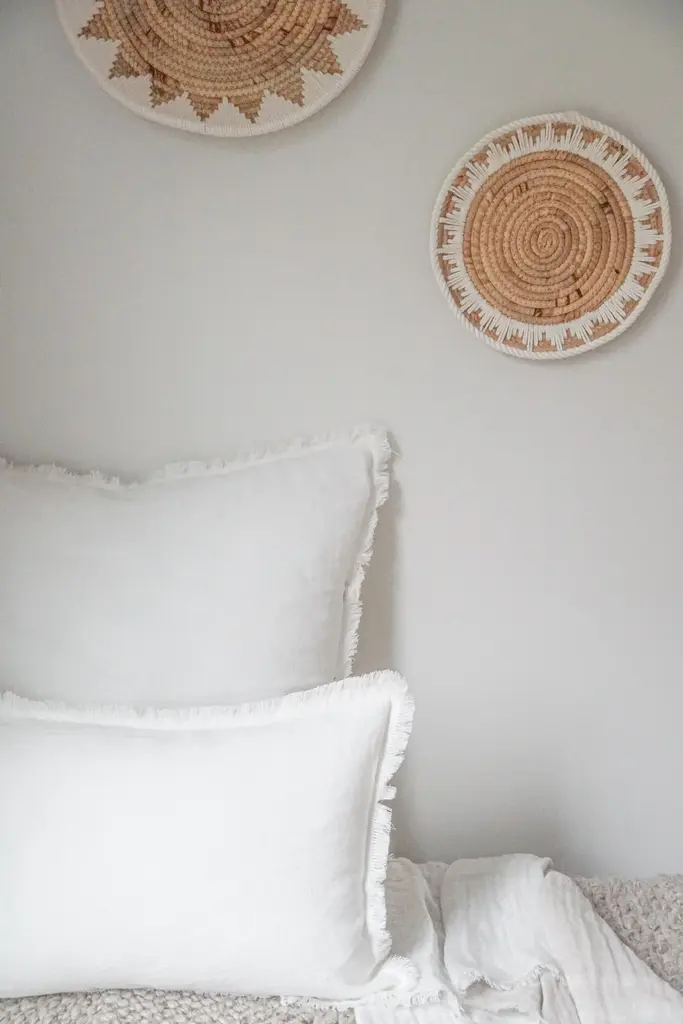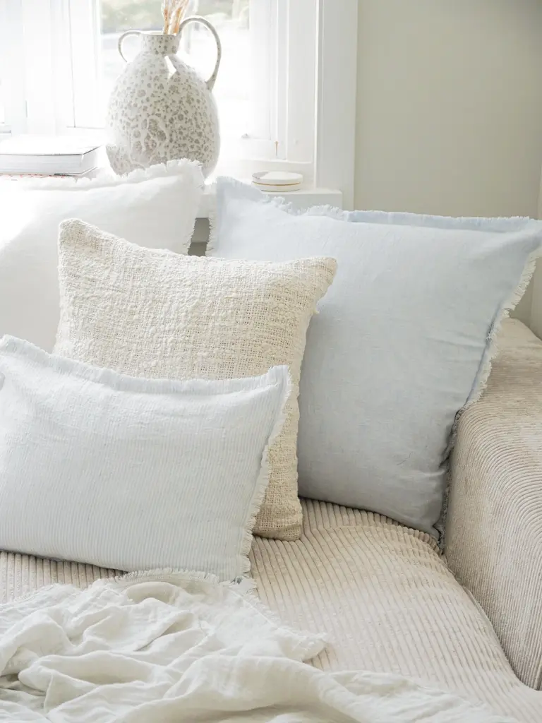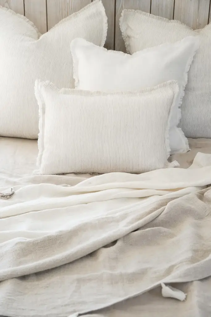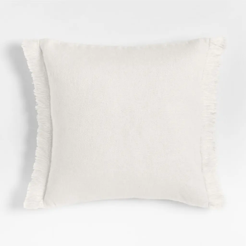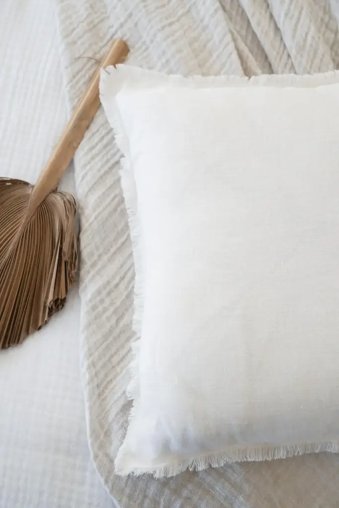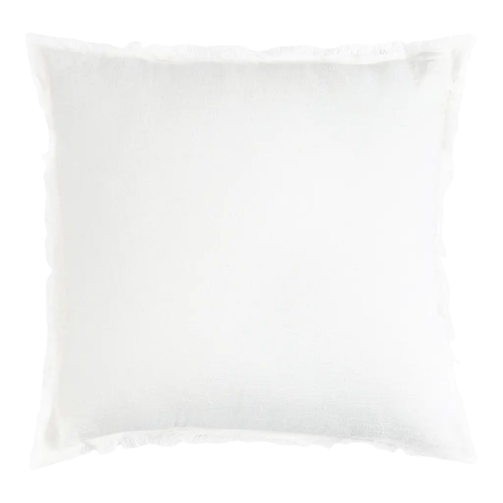 Our White So Soft Linen Pillow is Soo soft- you won’t believe it's linen! This yarn has a slight nub which gives it a beautiful natural texture. Edges have a self-fringe on all sides. Down Insert Benefits: Durable, Easy to fluff and re-style, Retains heat 10/90 Down Insert Inside Fill: 90% gray duck feathers and 10% goose down Outer Shell: 233-thread count 100% cotton fabric Made in the USA
