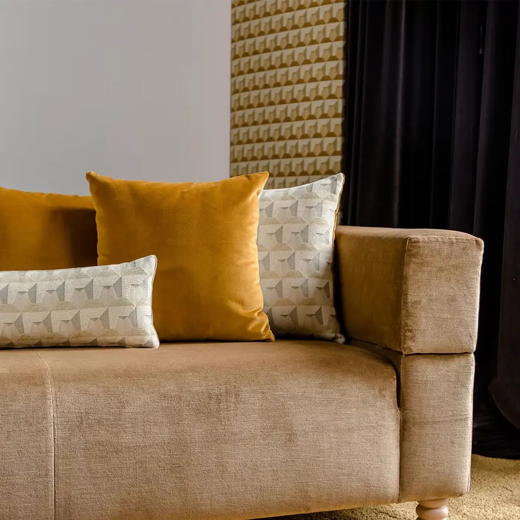 Carrè Cushion is a masterpiece of craftsmanship perfect for both beds and sofas. Each piece is expertly stitched in Relief jacquard fabric designed by Bruno Tarsia and cotton velvet. Attention to detail and sartorial precision ensure a sophisticated and comfortable aesthetic in any living space.