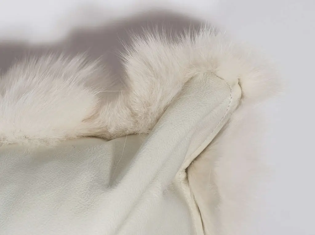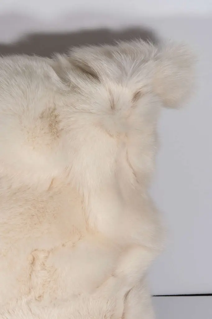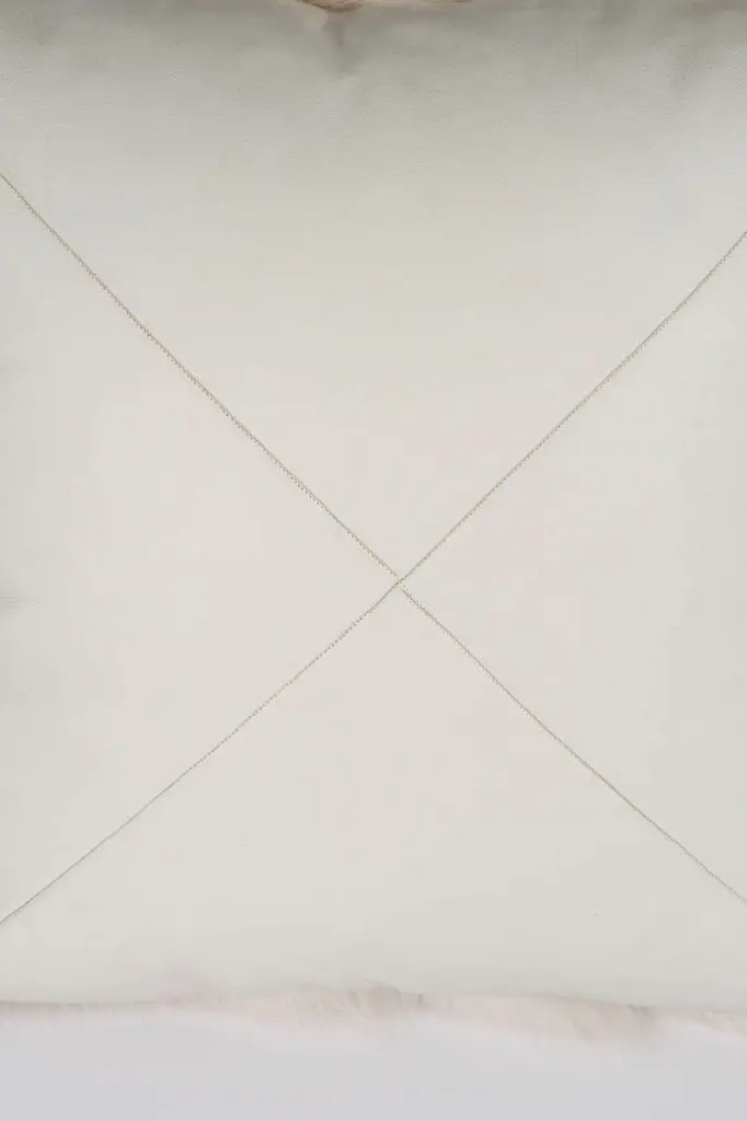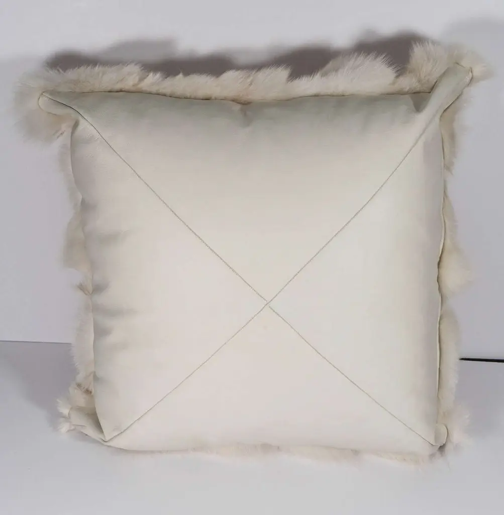 White fox pillow with white leather backing. Beautifully crafted with genuine fox fur, color matching leather backing and zipper. Made to order.