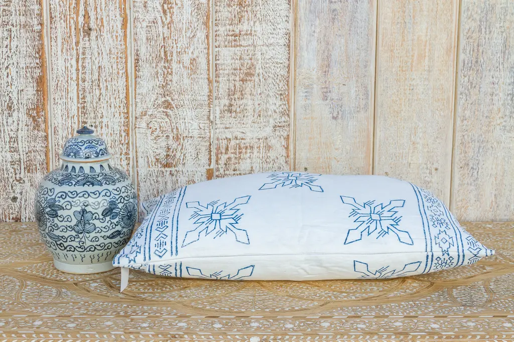 These pillows, inspired by ancient Aztec shield designs are hand block printed with vegetable dyes on 100% fine quality linen and enclosed with a hidden zipper.*Insert sold separately. Recommended insert size 25" x 17"