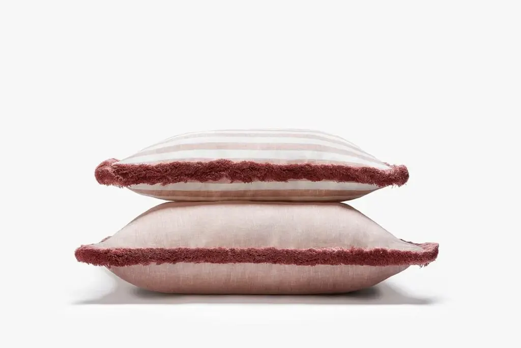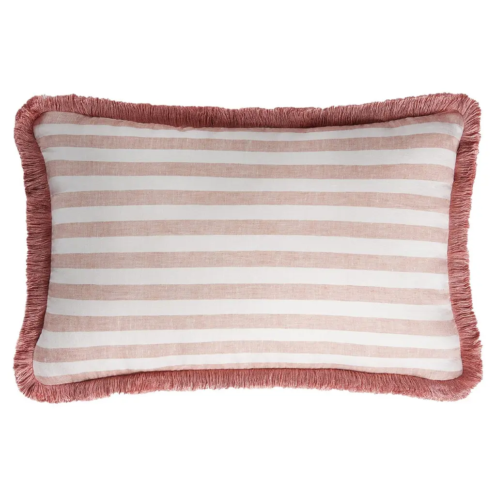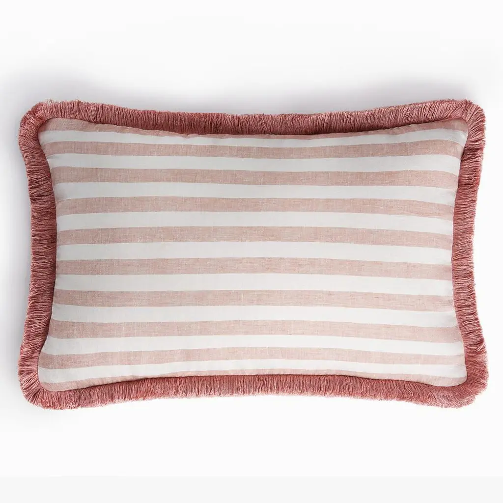 White Light Pink With Light Pink Fringes Happy Linen Striped Pillow By Lo Decor For Lorenza Briola