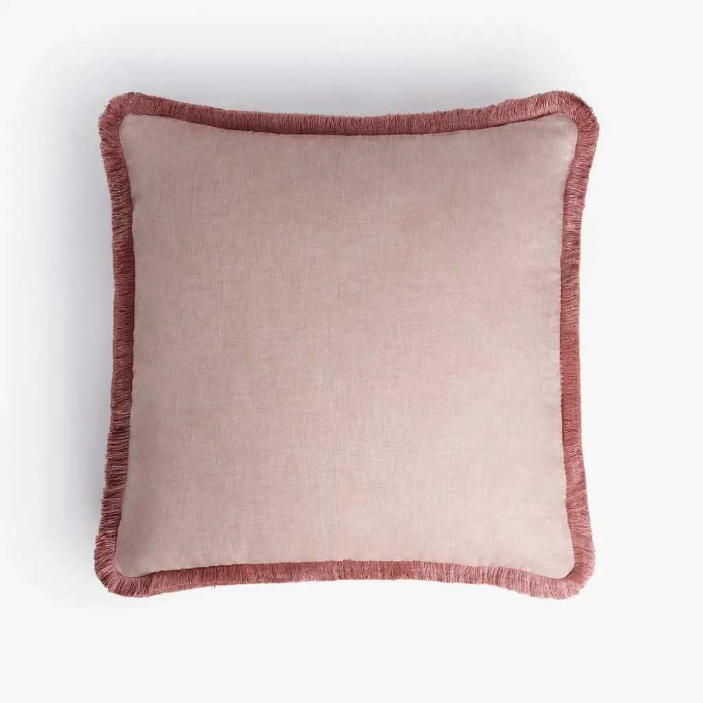 Lo decor | happy linen pillow the perfect accent piece for an easy style update, this cushion makes a chic accent for any well-decorated home, adding charm to a bed, sofa, or your favorite armchair. crafted of pure italian linen, refined with sophisticated cotton fringes, lo decor linen collection is available in both plain and striped colors both with its delicate hues and details with understated glamour. warm colors, exquisite craftsmanship, and elegant materials are the hallmarks of these cushions which will be a refined addition to both a classic and contemporary decor. removable cover. care instructions: dry wash labeled by maker