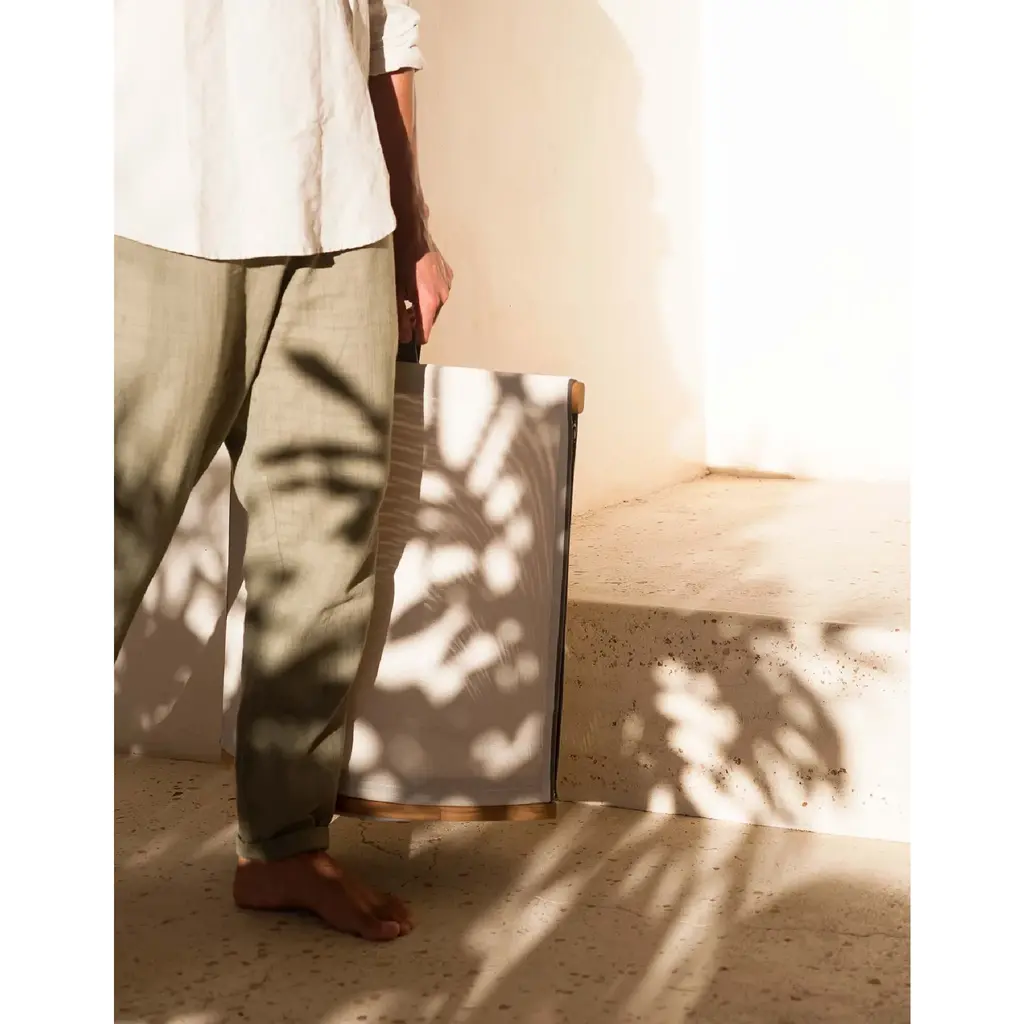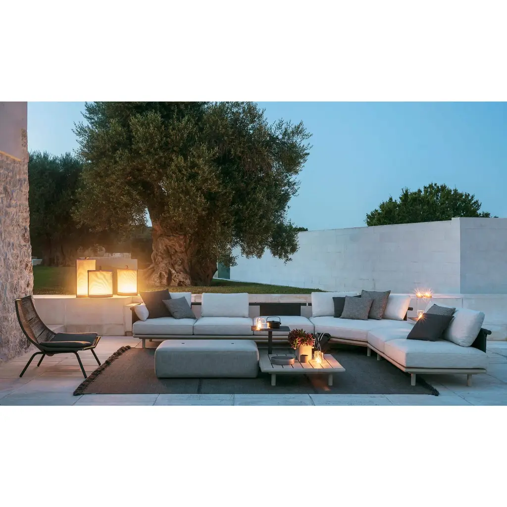 With Pillow, Roda adds a lighting fixture to its range of accessories for outdoor use. As the other collections, Pillow aims to create an emotional atmosphere and an environment that is incredibly comfortable and soothing. Pillow is made of materials traditionally used by Roda, such as the natural teak for the eye-shaped base and Canatex in the sand color for the covering, and features trimmings to define the sides of the lantern. A handle made with gray colored belts allows the lanterns to be easily moved or hanged.