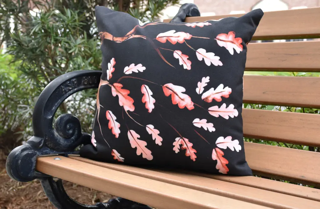 Accentuate your outdoor decor with a burst of warm colors and rustic fall designs. E by Design''s Harvest Wild Oak Branch outdoor pillow creates an enchanting autumn atmosphere everyone will adore. This pillow is perfect for any outdoor seating area!