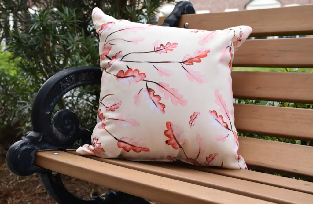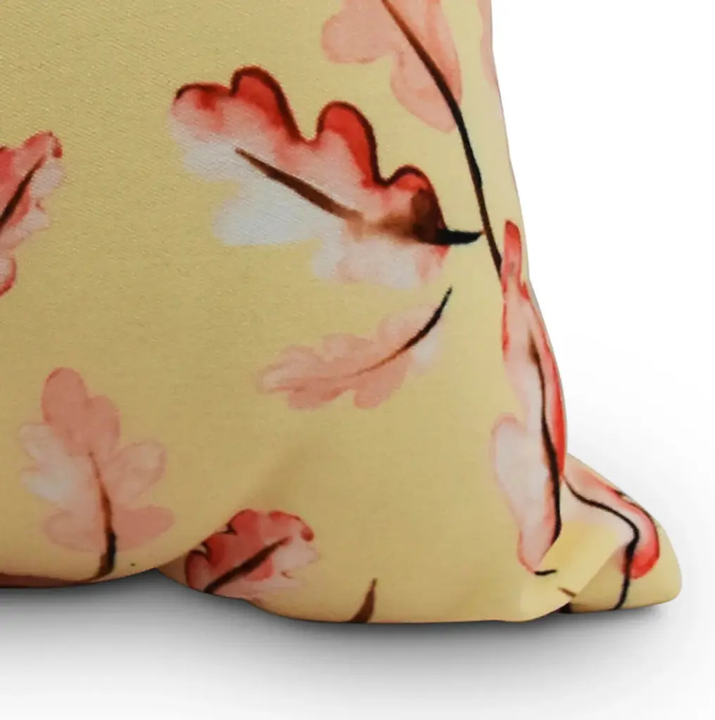 Wild Oak Leaves Cream Floral Print Outdoor Decorative Throw Pillow, 18"
