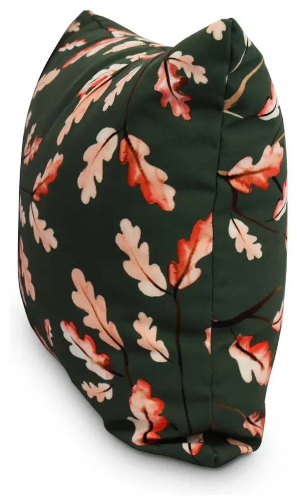 Wild Oak Leaves Floral Print Outdoor Decorative Throw Pillow, Dark Green, 16"
