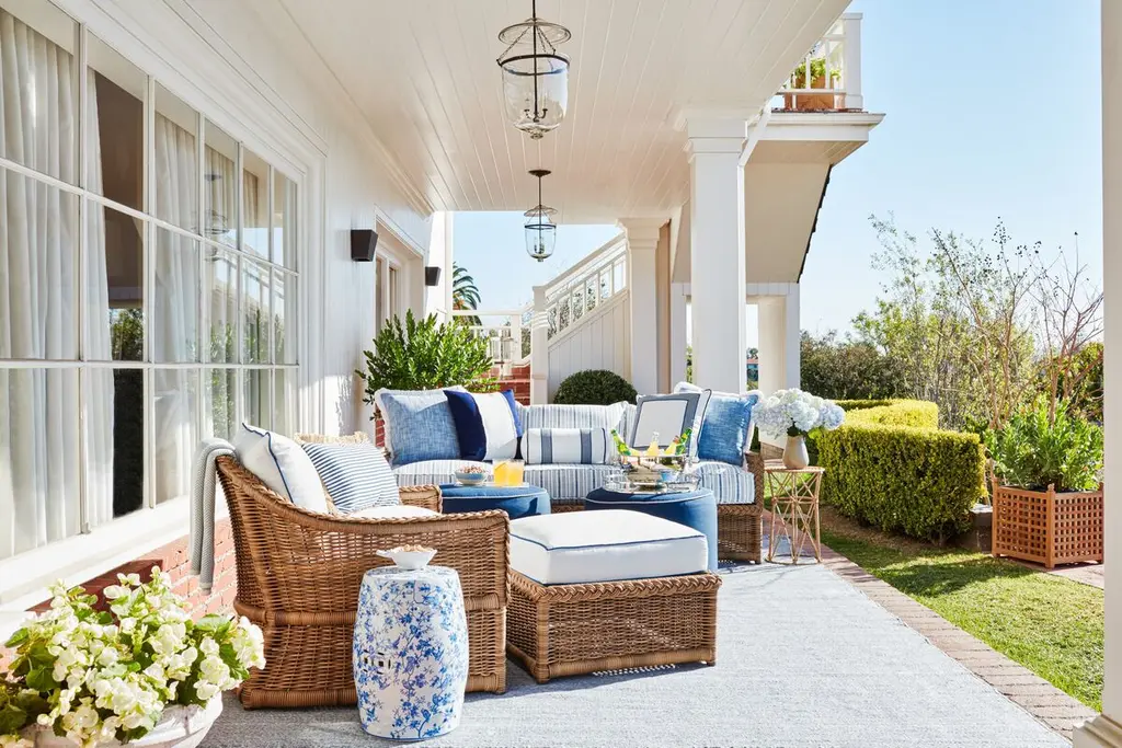 Willa 20x20 Outdoor Pillow, White/navy