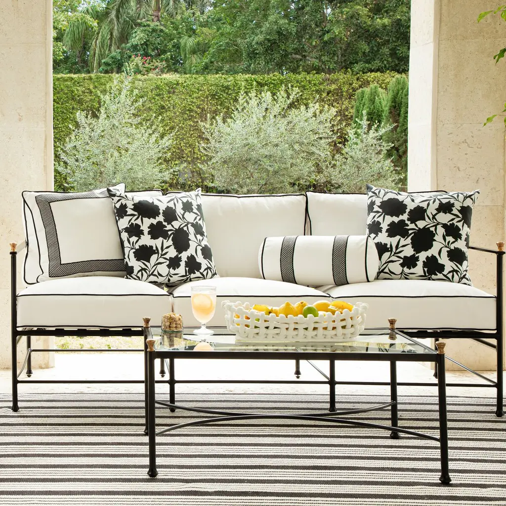 With its trellis-pattern embellishment and crisp welting, this pillow is certain to enliven your patio, porch, or sunroom. Because it's made with fade-resistant, easy-to-clean performance fabric designed to withstand the elements, you'll be able to enjoy it now and for seasons to come.