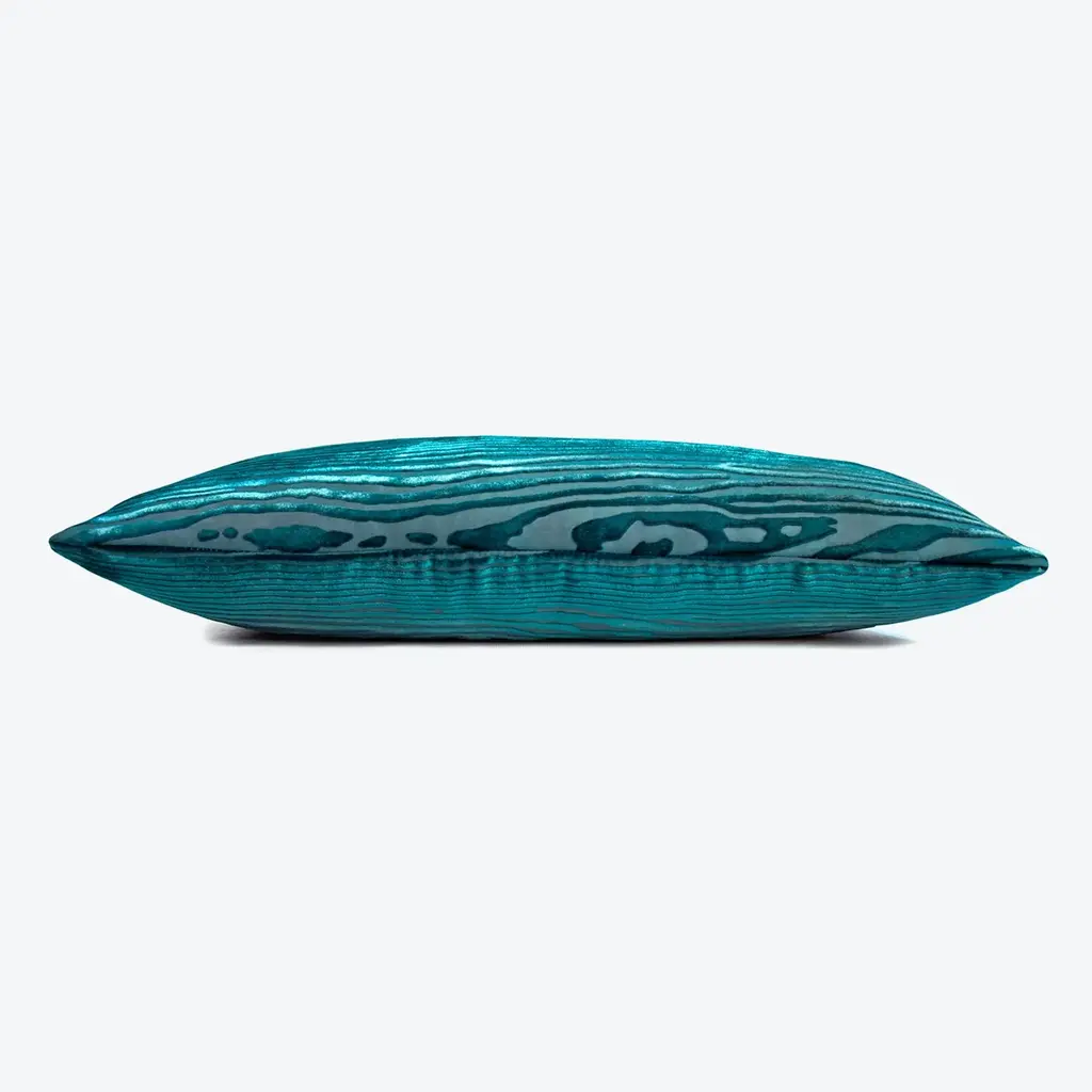 The mesmerizing woodgrain pattern evokes the tactile quality of wood, each vein another layer of storied character added throughout the years. Juxtaposed with lustrous silken velvet, the pattern takes on an endlessly enchanting appearance that complements the interiors. This design began in Kevin’s sketchbook, was printed on silk velvet, then hand-painted in small batches by artisans in Philadelphia. Dye is applied by hand in layers on the velvet fiber surface. Variations in color are part of the nature of their unique dying process.