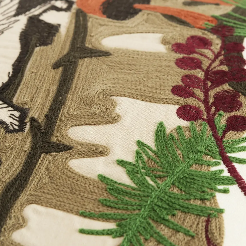 This whimsical and nature-inspired accent pillow is sure to bring a bit of the outdoors inside. Whether you're looking to add a touch of Rustic charm to your ranch-style home or simply love the look of animal applique, this pillow is the perfect addition to any winter decor in a Natural colorway of Natural, Brown, Green and Wine. Featuring running and satin stitch embroidery, this pillow showcases a porcupine design on a wood stump that is both fun and stylish. The matching solid cotton back with a hidden zippered closure make this pillow easy to fill and care for.