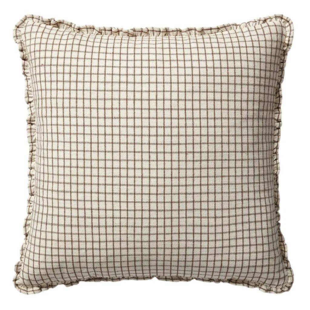 Wool/linen Plaid 23"x23" Maple Brown Throw Pillow With Feather Insert