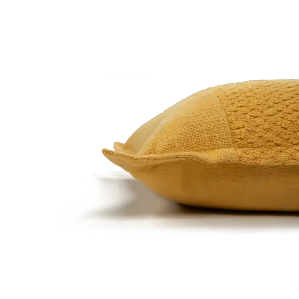 This pattern blocked pillow is made combining two remarkable textures: the cotton slub and a patterned weave. The difference in the height of the textures creates a wonderful patterning that is at home in any décor. This pillow is framed with a self flange. This pillow is a textural showstopper making it a wonderful fit for "front and center" applications. Layered or alone and for any style decor, this pillow exudes comfort and unabashed, understated confidence. The back of this pillow features a hidden zippered closure for ease of fill.