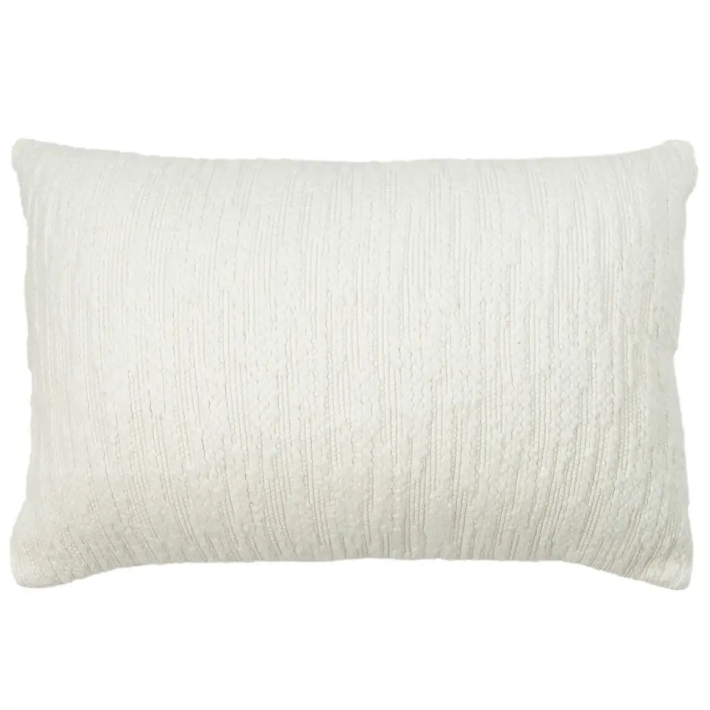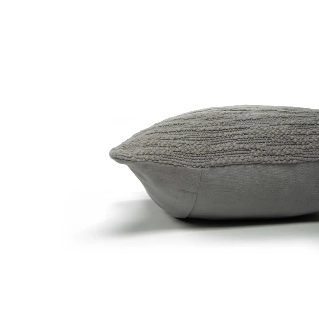 This pillow is woven tightly using slubbed and non slubbed yarns. This technique creates solid woven spaces and a high low texture that is randomly patterned and can appear like an impressionistic skin pattern. The texture is remarkable yet very, very soft. This pillow is sophisticated and brings style verve to any decor. This pillows proportions make it a great layering piece. It will add a style flair wherever it is placed. Knife edged, this pillow features a coordinating cotton back with a hidden zippered closure.