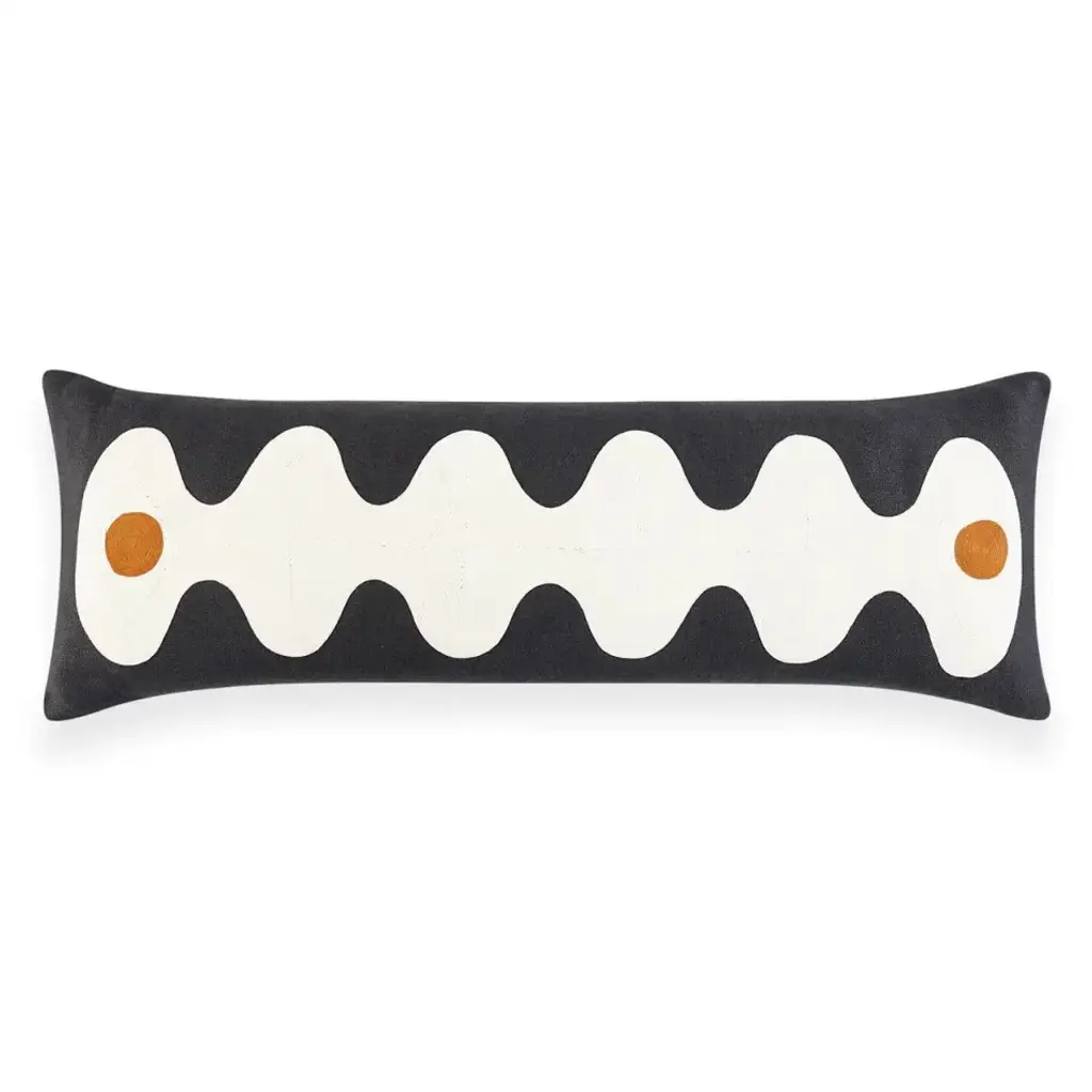 Indulge in a world of comfort and style with this abstract accent pillow. Snuggle up and sink into the cushioning of this premium-quality pillow and let it add an air of sophistication and color to your decor. Measuring 14" x 26", this pillow is woven with 100% cotton, ensuring the ultimate softness while equally durable for everyday use. Easily blended into a modern industrial or contemporary motif, this knife-edged pillow is appliqued with an abstract pattern against an ivory background and finished with satin-stitched embroidered edges for a touch of elegance. This stunning pillow also features a coordinating solid back that's closed with a hidden zipper for ease of fill. The hues are beautifully arranged in a gradient that creates a subtle ombre effect, bringing an effortless yet chic feel to any room. 100% Cotton