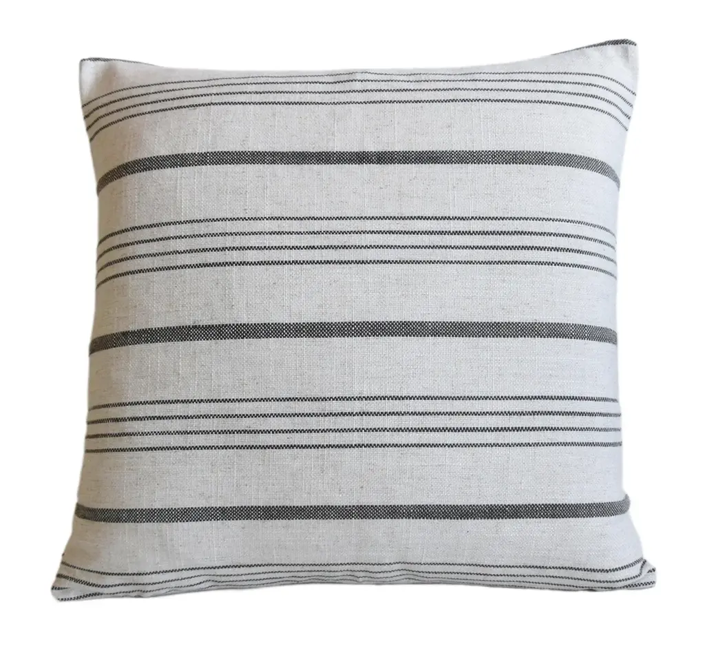 Custom-tailored reversible pillow in designer woven linen cotton blend charcoal gray striped fabric with a white background linen fabric. Same fabric on reverse. Hidden zipper closure. Plump generous goose feather-and-down insert. Excellent new, unused condition!!!! ***PLEASE NOTE: I will combine shipping whenever possible if you purchase multiple items from my shop. Warm regards, Mike Seratt ***Also don't forget to take a peek at my other current listings...you just might find something you can't live without!!! It's easy just click on my name to the right of any listing highlighted in black "Mike Seratt of The Prized Pig" and presto it will bring you to my storefront!!! Cheers!!! Mike Seratt I SHIP OUT IMMEDIATELY, SO THE ESTIMATION YOU SEE FOR THE DELIVERY TIMELINE IS CHAIRISH'S OVERALL GENERAL TIMELINE, BUT I WILL GET THIS OUT THE NEXT DAY AND DELIVERY IS USUALLY 5-7 DAYS AT MOST