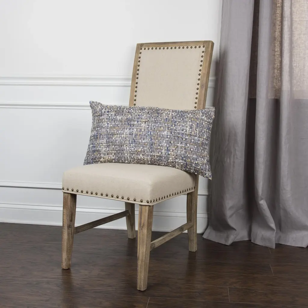 Enchanting to the eye, this Rizzy Home Blue, Brown, Tan, and Ivory Rectangular Abstract Throw Pillow takes its image from the natural formations found in the earth. Multi-sized threads that are variegated in color are woven together on the pillow top to create a texturally engaging design -- perfect for your transitional style home or office décor. A color-coordinated, zippered back allows for easy access to the pillow insert.