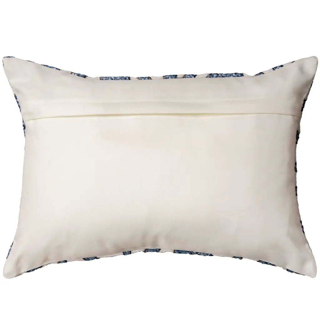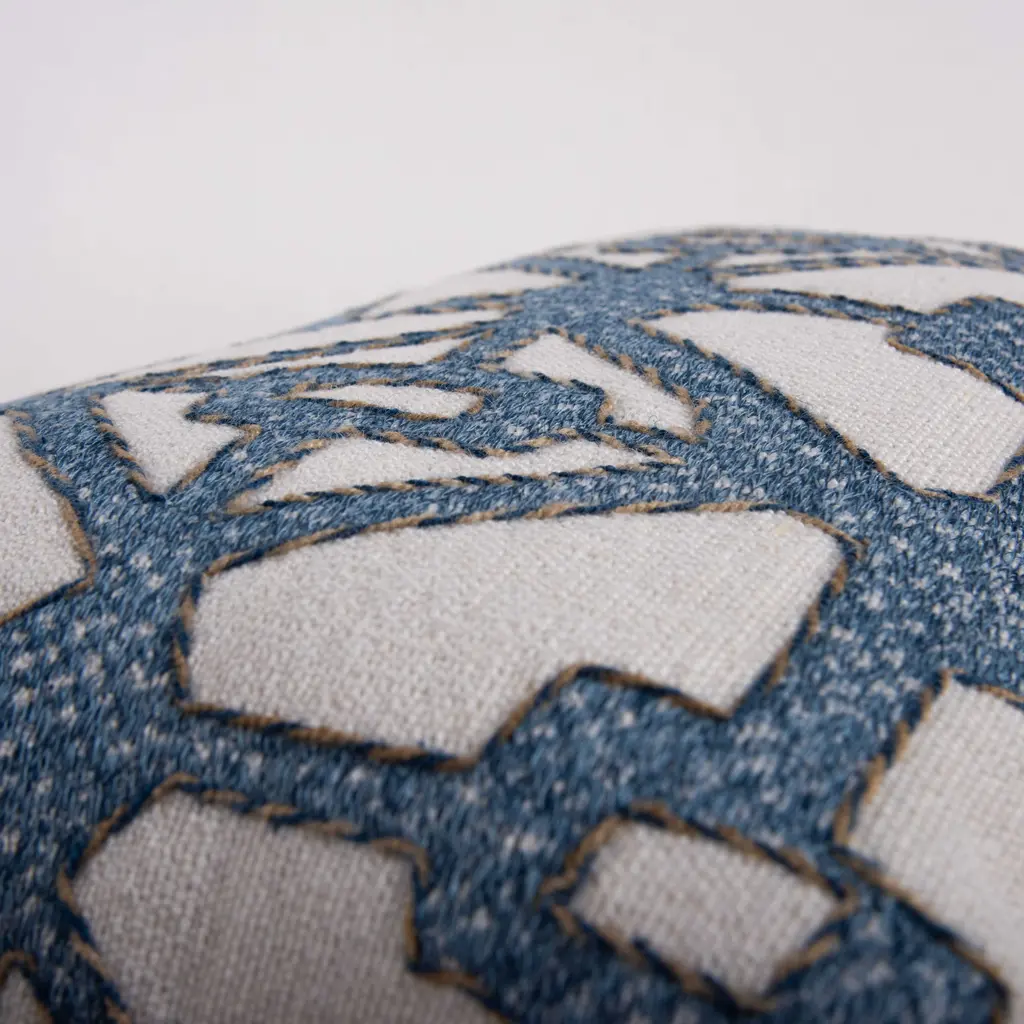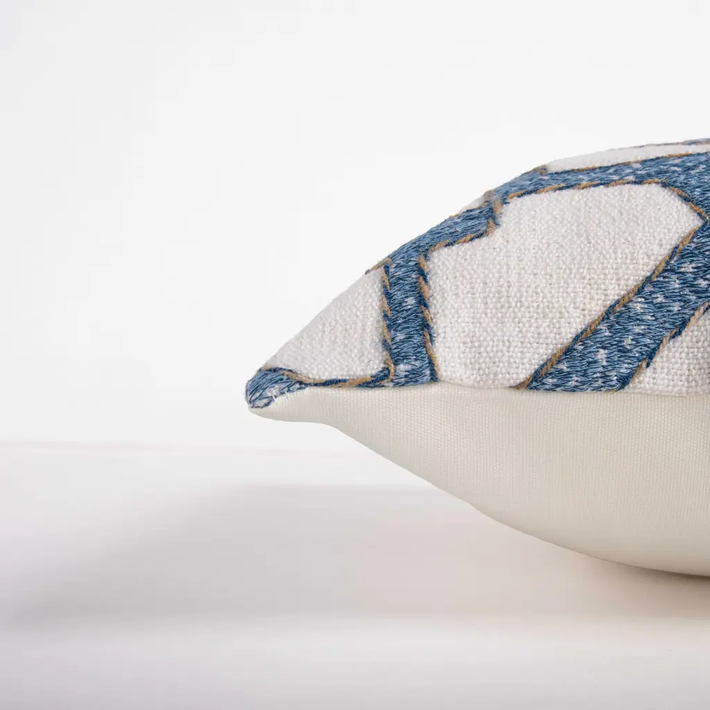 The perfect fusion of tradition and modern aesthetics, this accent pillow features a distinctive geometric pattern embroidered on a PET woven material that exudes both sophistication and charm. Designed in intricate detail, this pillow is traditionally knife-edged, with dimensional accents of hand-guided embroidery in PET yarns for beautiful texture and movement. This pillow showcases a soft color palette in Natural Ivory and sky Blue, making it an excellent choice to complement a variety of decor styles, whether layered or alone. A hidden back zipper closure allows for effortless fill, promising easy functionality without sacrificing style. A subtle blend of the Natural and light Azure hues creates a timeless style statement that works with any design motif, from contemporary to traditional. Enjoy this pillow with a hypoallergenic, down alternative fill option. Made of 100% polyester microfiber, this fill option gives the squeezable, formable and durable fashion of down while reducing allergens, animal welfare concerns, and negative environmental impacts.