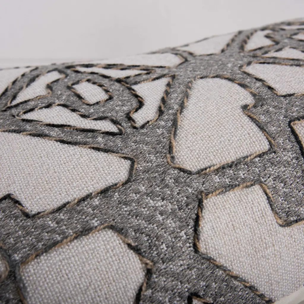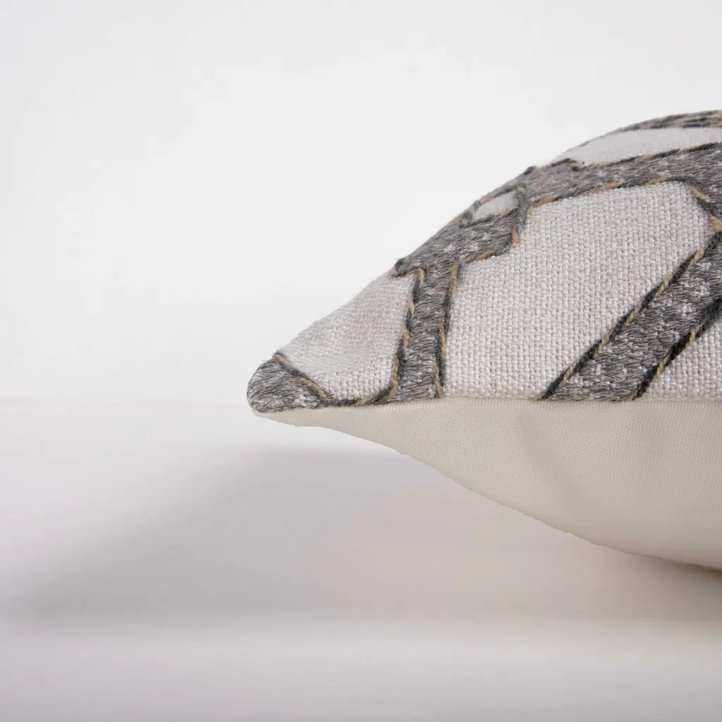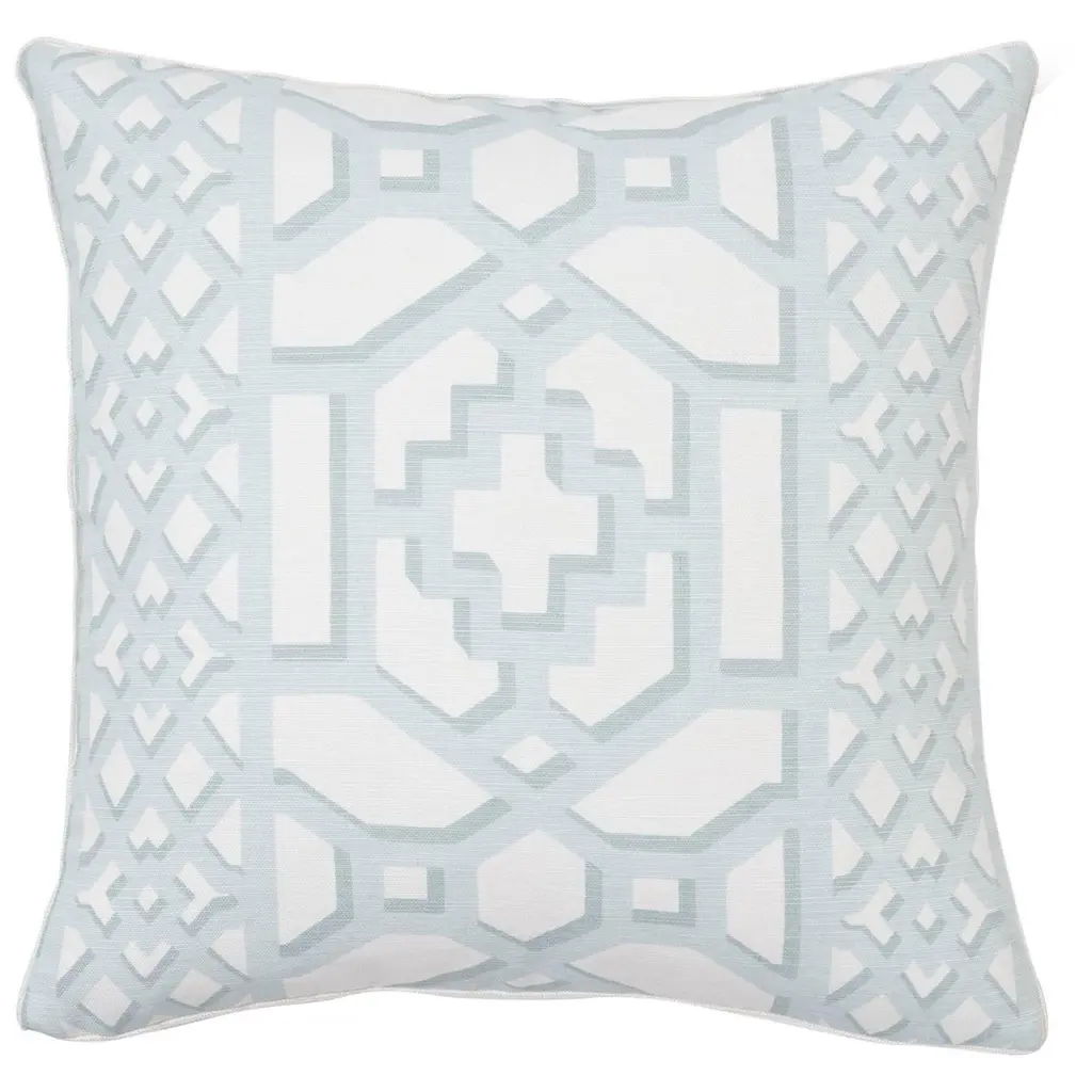 The perfect fusion of tradition and modern aesthetics, this accent pillow features a distinctive geometric pattern embroidered on a PET woven material that exudes both sophistication and charm. Designed in intricate detail, this pillow is traditionally knife-edged, with dimensional accents of hand-guided embroidery in PET yarns for beautiful texture and movement. This pillow showcases a soft color palette in Natural Ivory and sky Blue, making it an excellent choice to complement a variety of decor styles, whether layered or alone. A hidden back zipper closure allows for effortless fill, promising easy functionality without sacrificing style. A subtle blend of the Natural and light Azure hues creates a timeless style statement that works with any design motif, from contemporary to traditional. Enjoy this pillow with a hypoallergenic, down alternative fill option. Made of 100% polyester microfiber, this fill option gives the squeezable, formable and durable fashion of down while reducing allergens, animal welfare concerns, and negative environmental impacts.