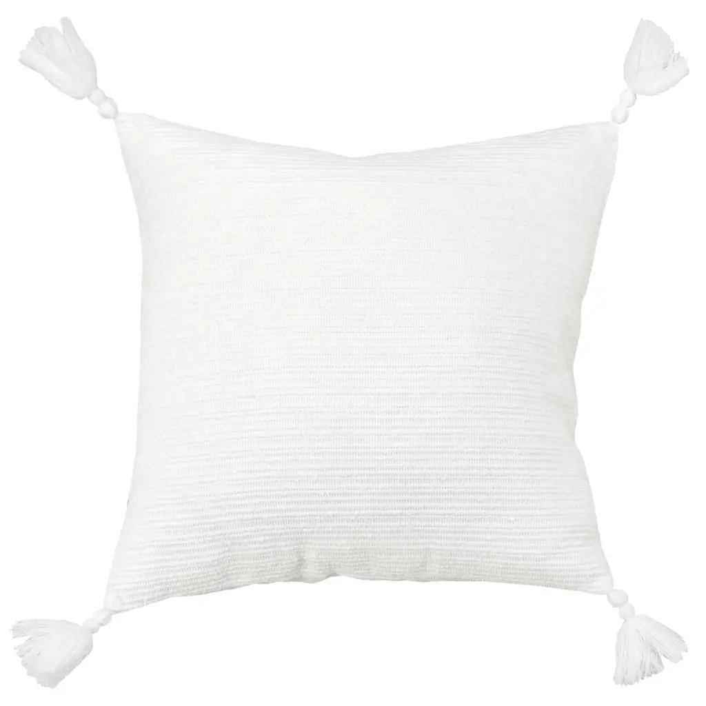 Bring classic beauty and understated elegance to any space with this beautifully woven accent pillow. With an urban farmhouse, vintage inspired design, this solid pillow in soft black features a hand loomed light texture and four corner tassels for refined detail and charm. Add a touch of chic sophistication to any bedroom ensemble, chaise or seating arrangement with this gorgeous pillow that will elevate the style in any living space.