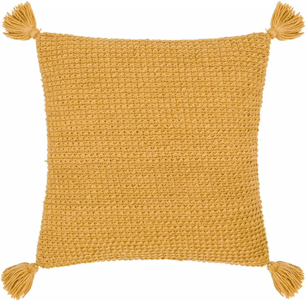 Woven Knife Edged Cotton Solid With Tonal Abstract Pattern Decorative Throw Pillow - Gold / 20"x20"