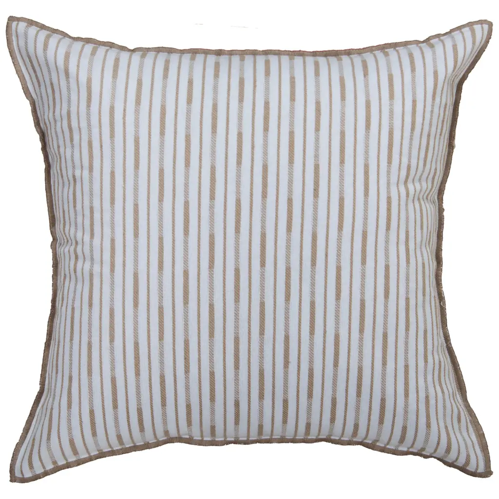 This 20 x 20 throw pillow is a perfect addition to breathe life into a room while maintaining a soothing, harmonious energy. Crafted from a cotton-polyester blend, this pillow features a dyed yarn stripe that creates a variegated pattern, showcasing both light and darker areas along the stripe. The embroidered satin stitch flange frames the woven design, adding a delicate, cottage-inspired accent. The fabric's twilled stripes create a rich texture, while the solid coordinating back with a hidden zipper keeps the look seamless. An inner lining of non-woven material gives the pillow a crisp yet soft tailoring, making it a versatile piece that easily complements both cottage and modern styles.