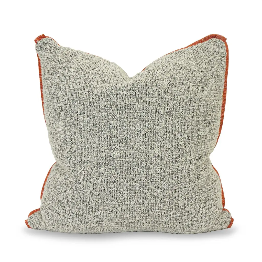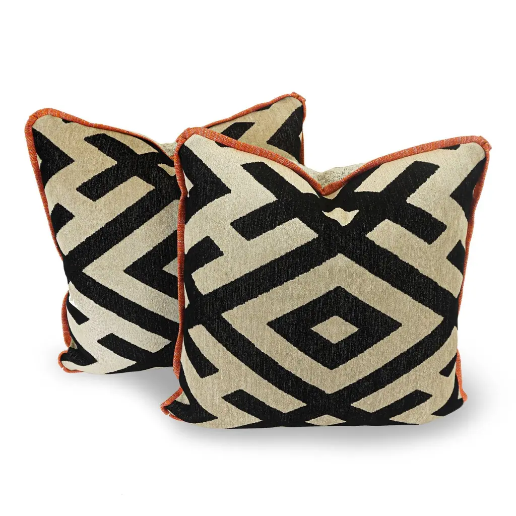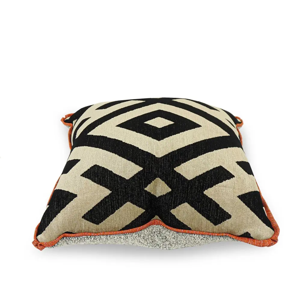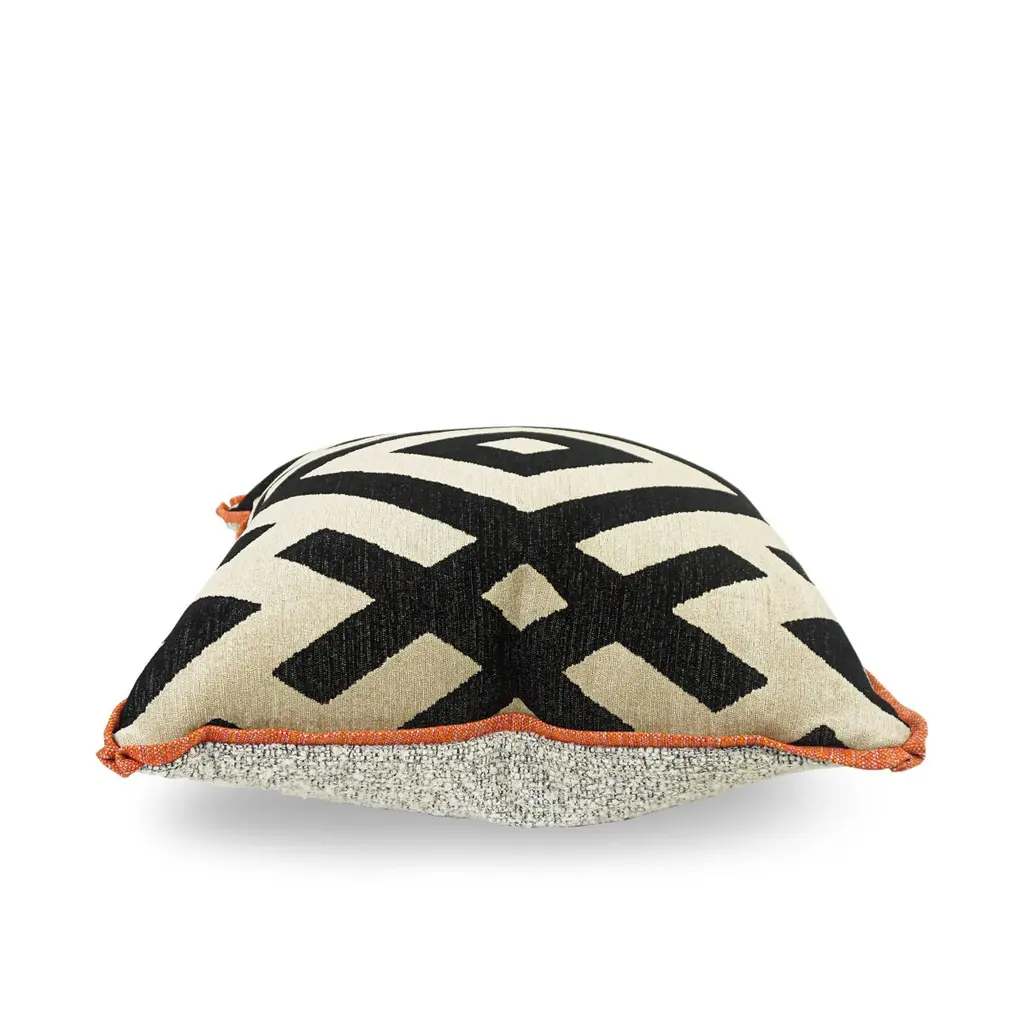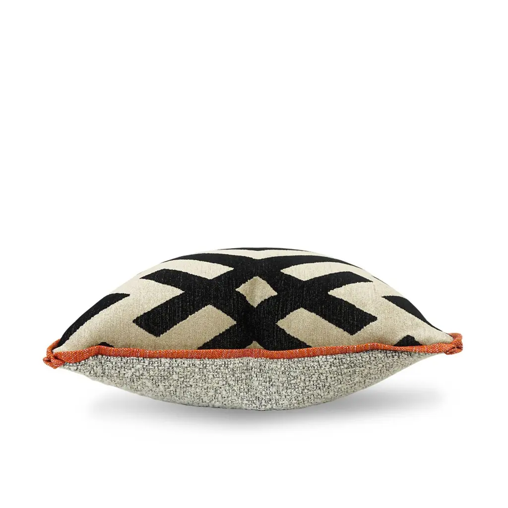 X Pattern Wool Square Pillows With Orange Welting And Boucle Back