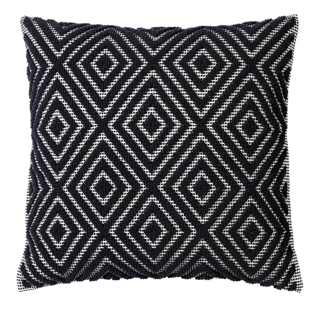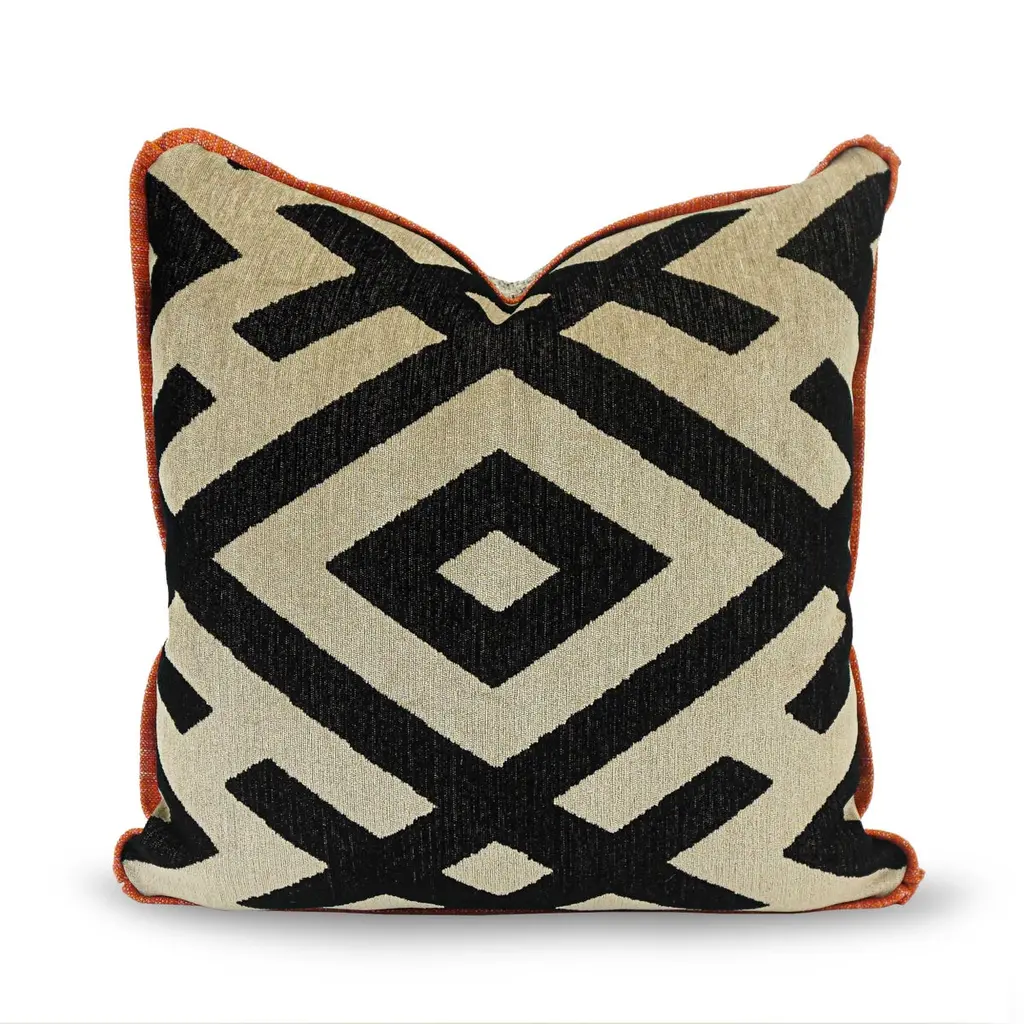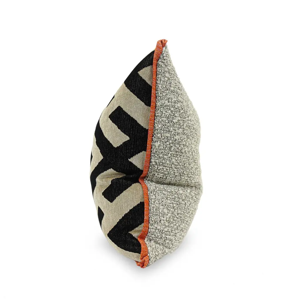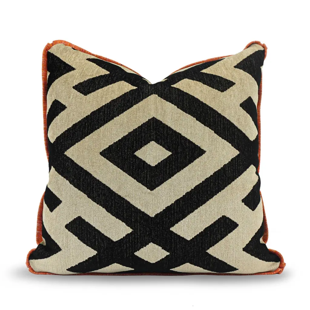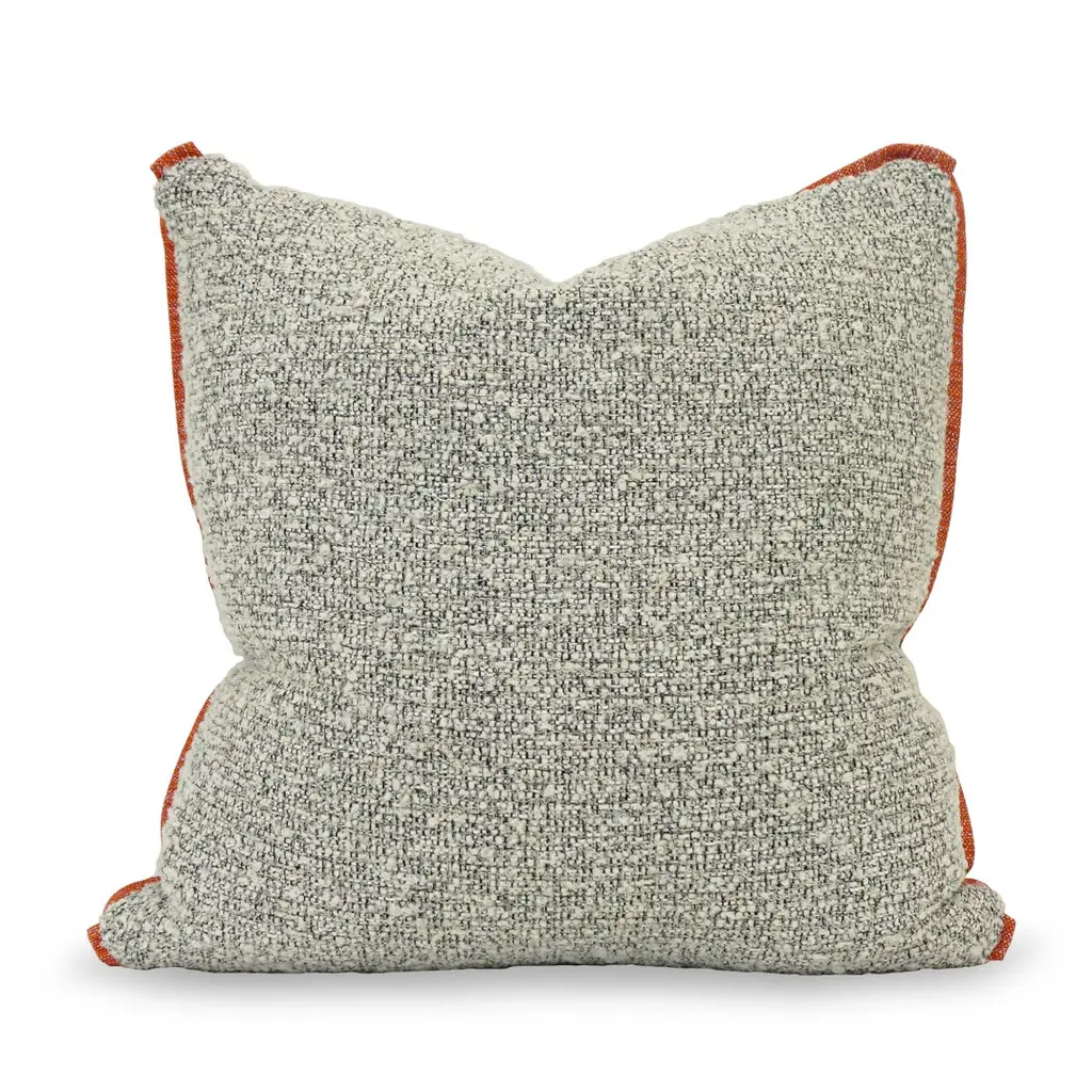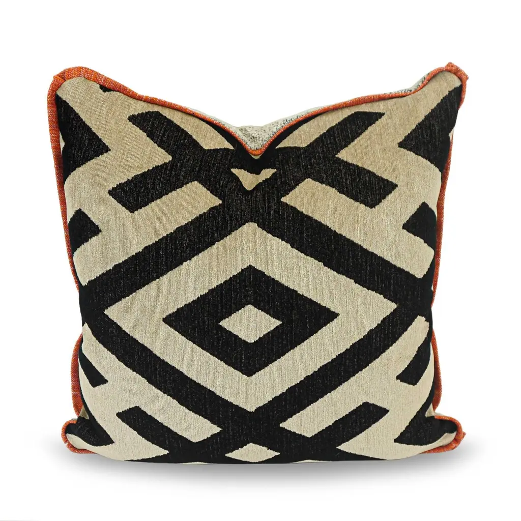 X Pattern Wool Square Pillows With Orange Welting And Boucle Back