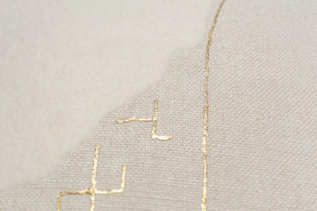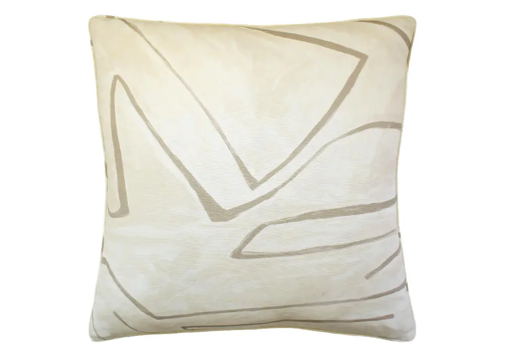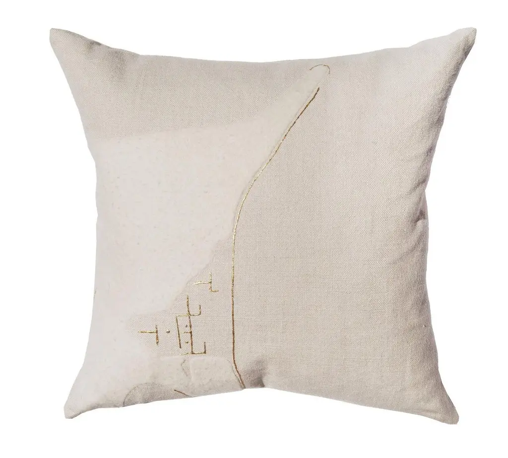 Named after the traditional pastry from the Island of Martinique, the “Bonbon Chouval" was a horse pastry sold on patronal feast. Its careless shape recalls happy childhood memories! At once traditional and timeless, the purity of the linen, the softness of the creamy felt and the precious golden details offers subtle richness and endless versatility. Pure linen Wool felt and golden details design on front. Backed in plain ivory linen. Hidden zipper. Insert sold separately. Size: 20" sq.