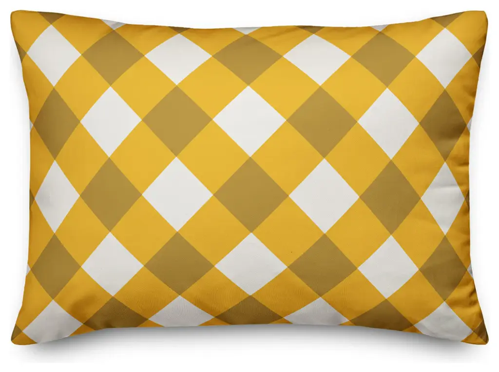 Yellow Argyle Outdoor Throw Pillow, 16"x16"
