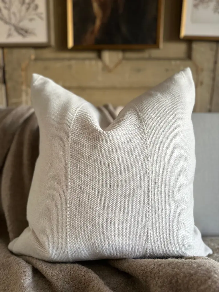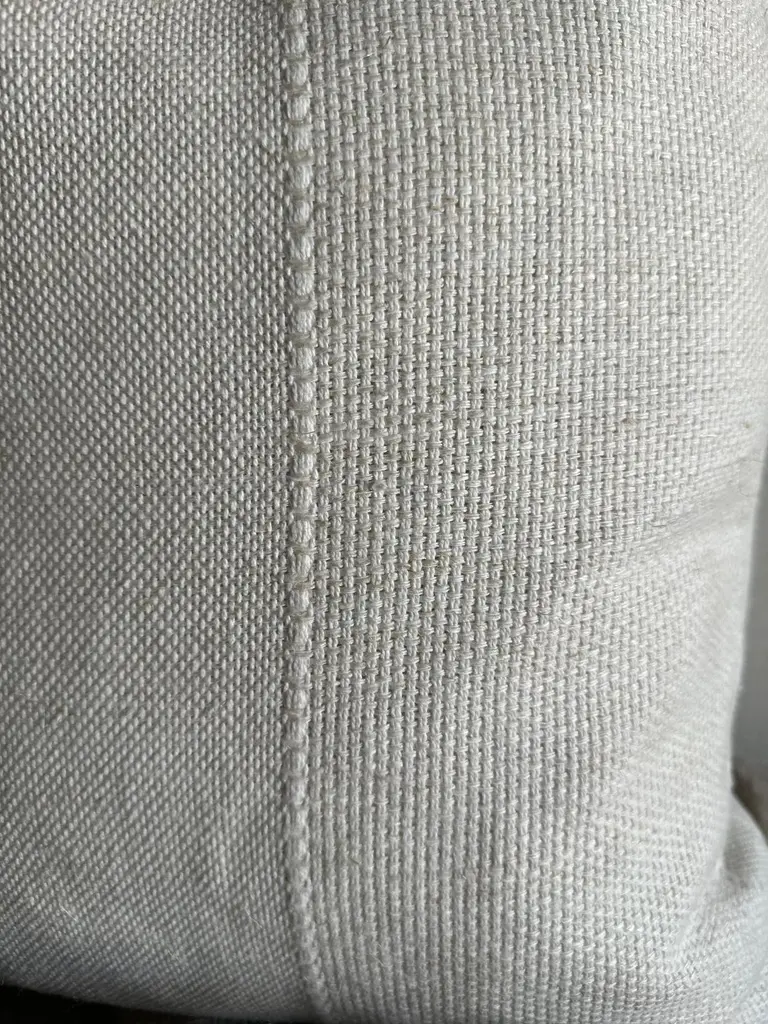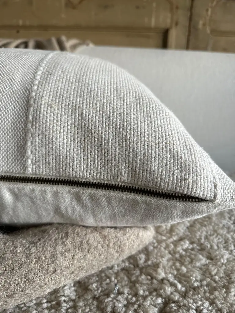 ZAK + FOX linen cotton blend Caravane in whiteSize: 22x22Insert is includedAntique brass zipper closureoverlocked stitched edgescolor: white dashesThis is a handcrafted textile. Minor irregularities are inherent to the weave and are a hallmark of its craftsmanship.CARE ; machine washable up to 30°C, for best results we recommend dry cleaningMARTINDALE 28,000