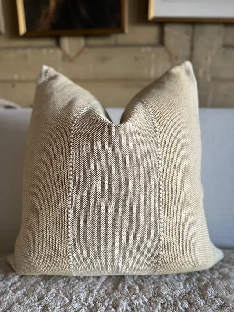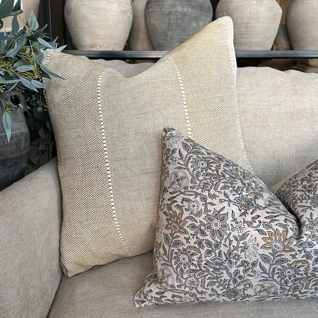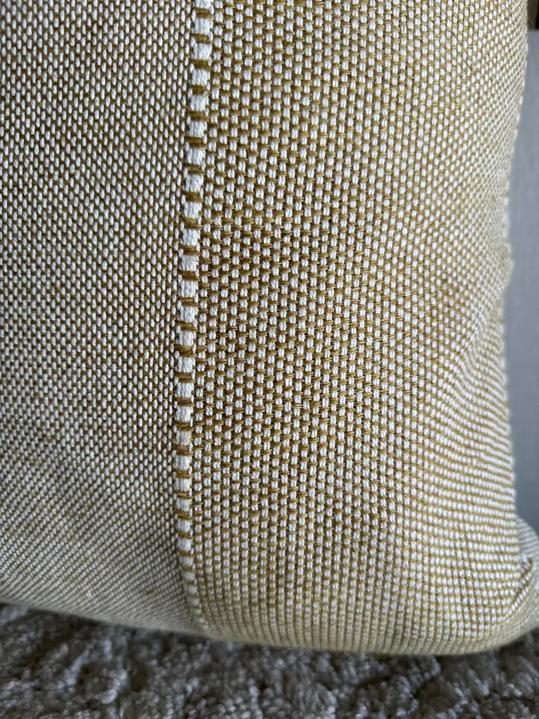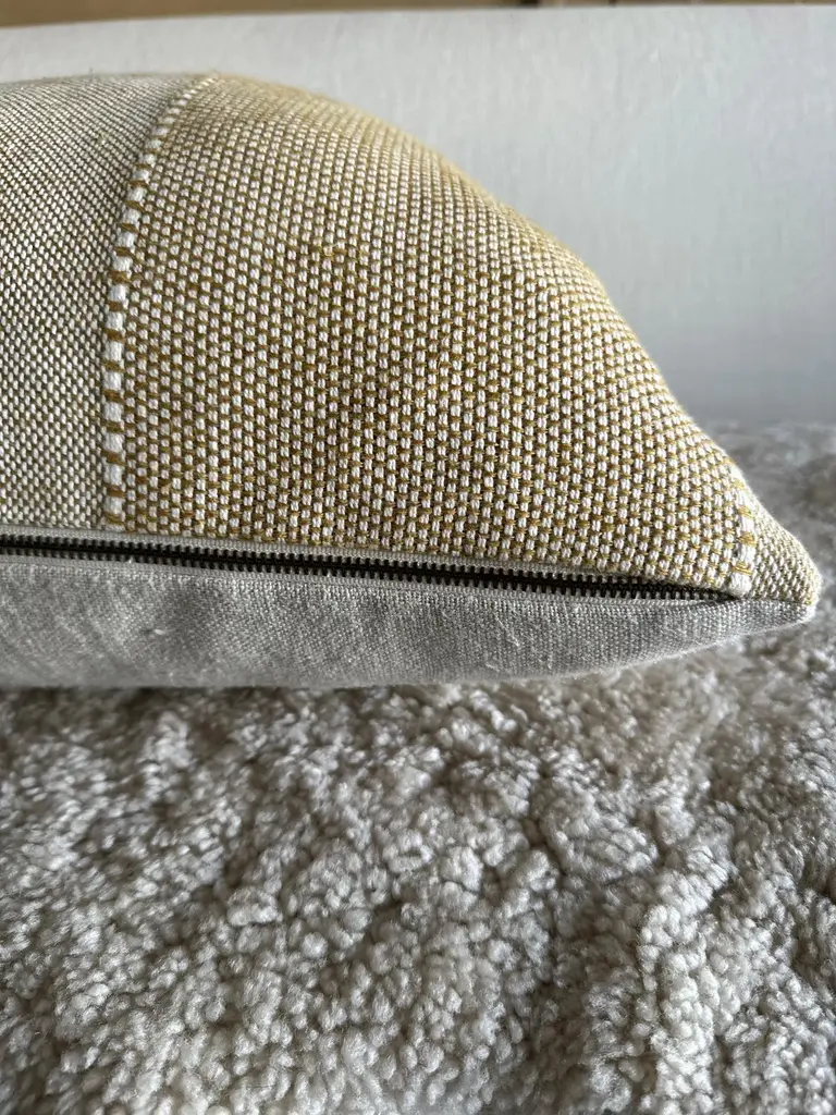 ZAK + FOX linen cotton blend Caravane in whiteSize: 22x22Antique brass zipper closureoverlocked stitched edgescolor: ocre/ dashes (golden / yellow)This is a handcrafted textile. Minor irregularities are inherent to the weave and are a hallmark of its craftsmanship.CARE ; machine washable up to 30°C, for best results we recommend dry cleaningMARTINDALE 28,000