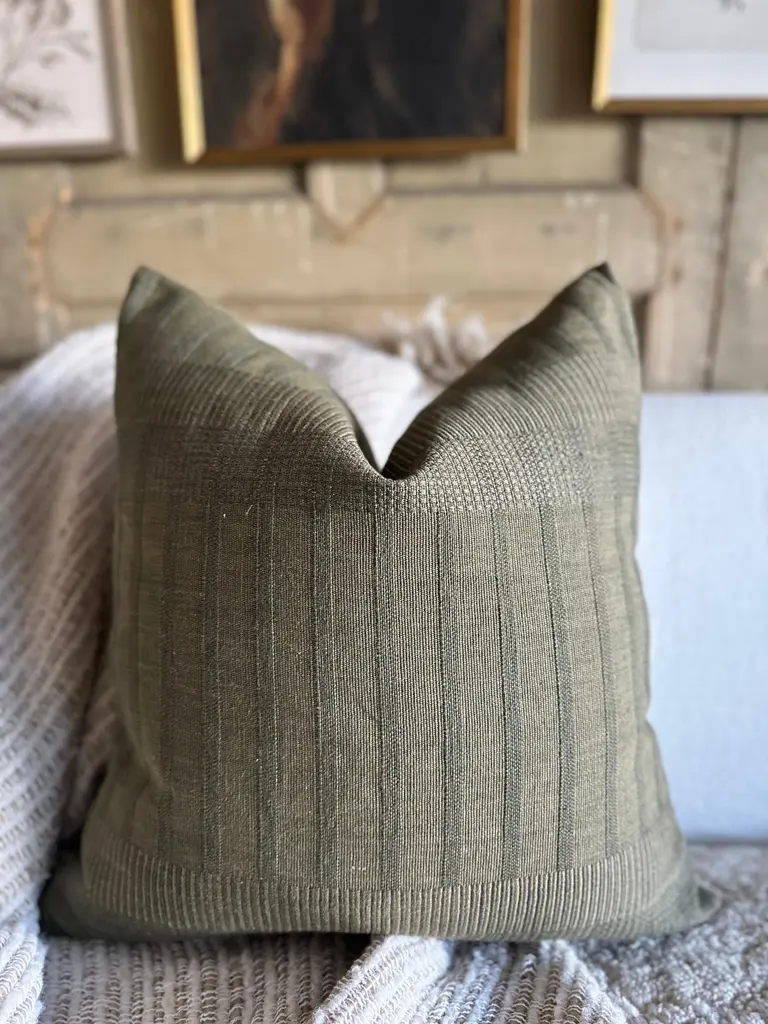 Zak + Fox Linen Pillow With Down Insert In Olive Green